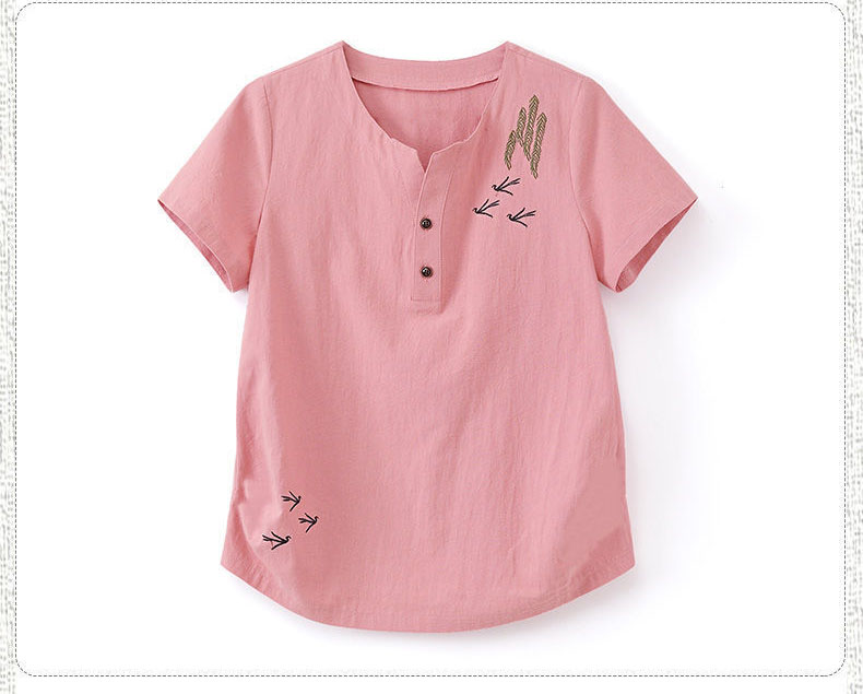 棉麻復古風短袖女士T恤【買一送一】粉色+藍色各一件(到手2件!每件均價549元!)