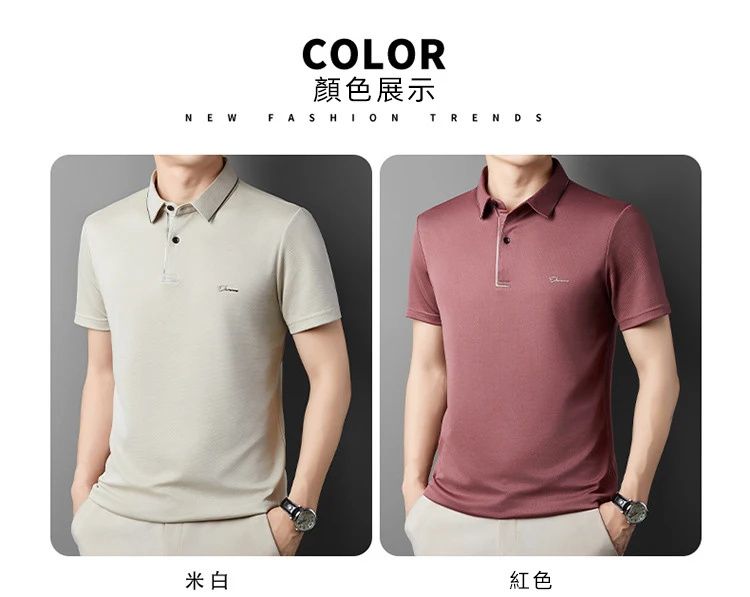簡約透氣冰絲速乾無痕POLO衫【買一送一】【米白色】+【紅色】各一件(到手兩件,每件均價649元!)