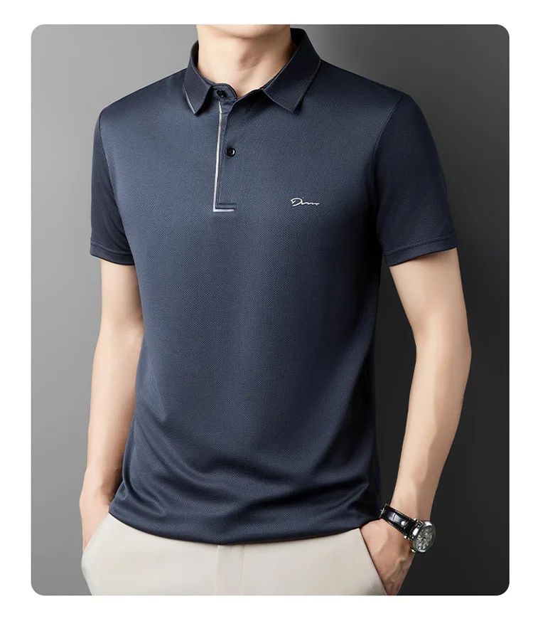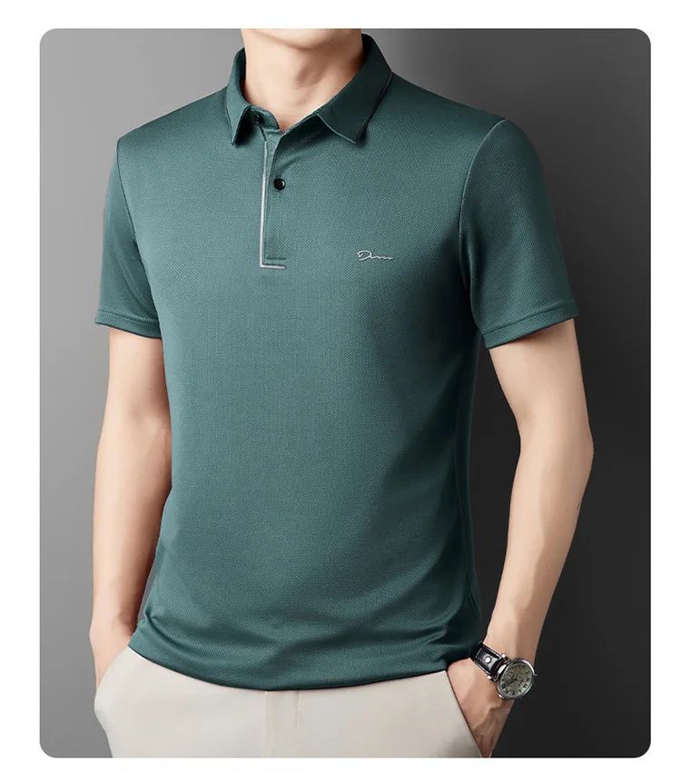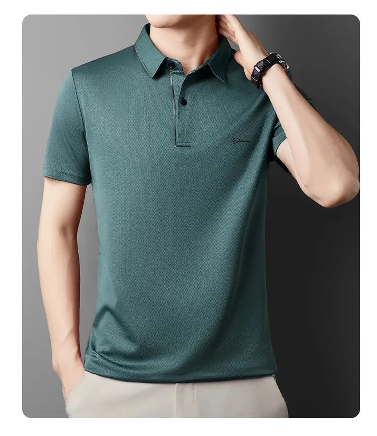 簡約透氣冰絲速乾無痕POLO衫【買一送一】【綠色】+【藏青色】各一件(到手兩件,每件均價649元!)