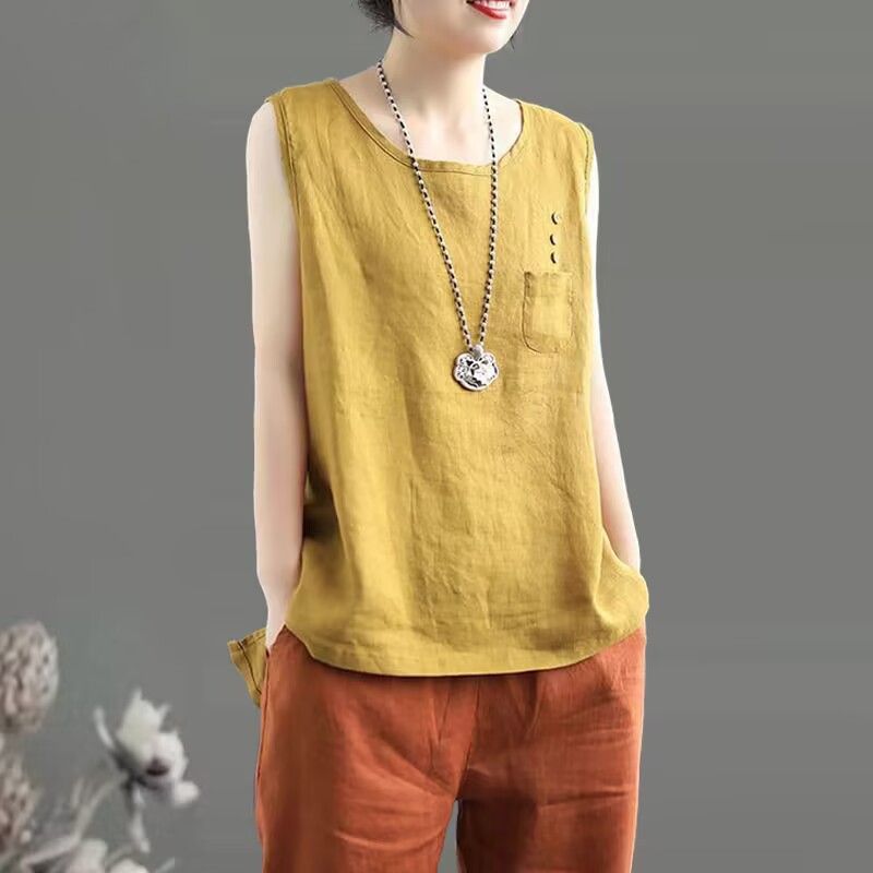 輕柔棉麻舒適百搭無袖圓領吊帶【買一送二】黃色+藍色+白色各一件(到手3件!每件均價333元!)