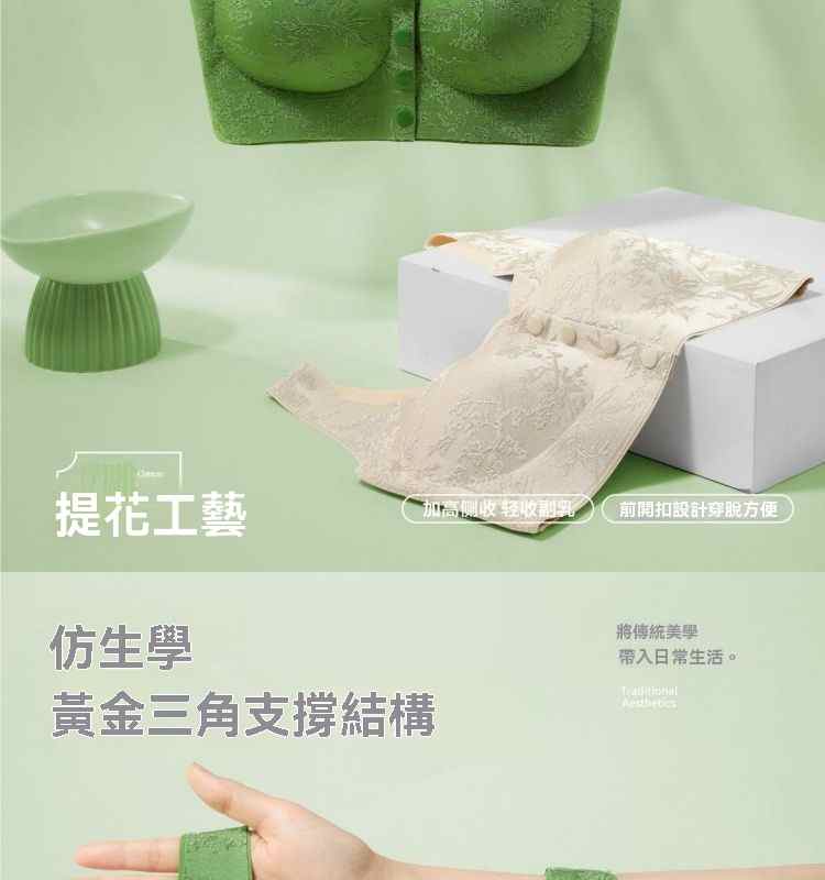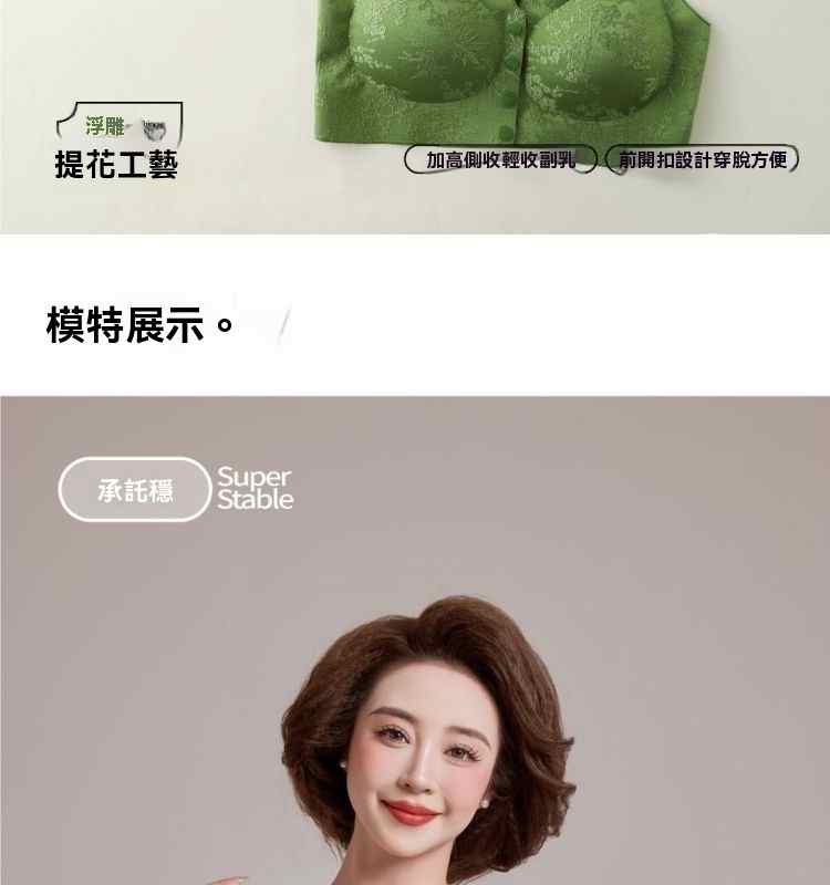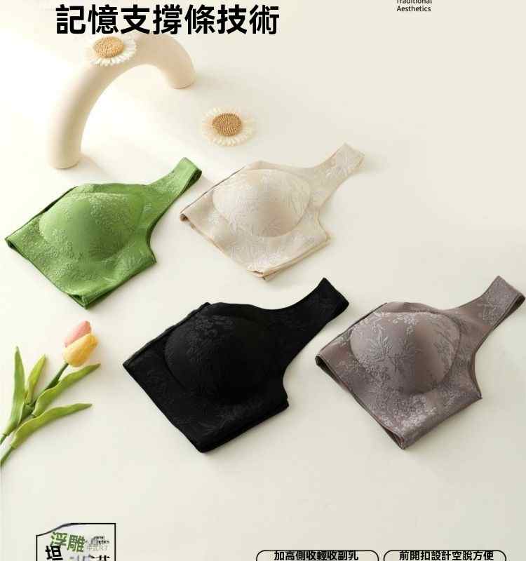 浮雕提花前開扣調整型內衣【綠】+【紫】+【膚】+【黑】各一件(到手4件!每件均價245元!)