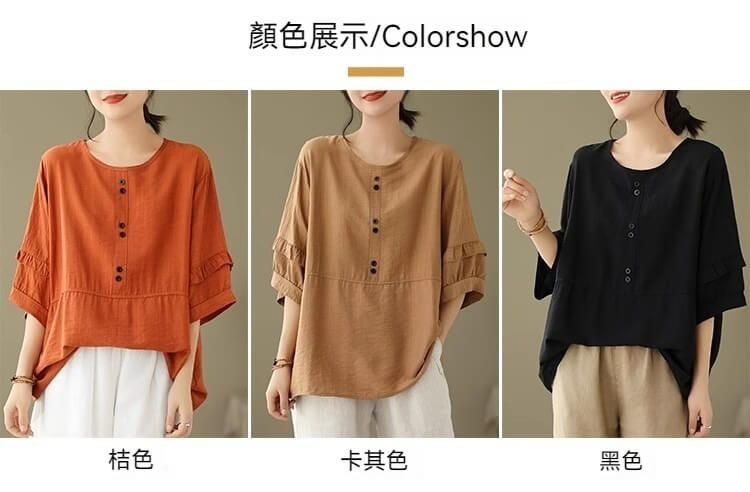 立體寬鬆顯瘦圓領排扣小衫【黑色】+【桔紅色】各一件(到手兩件,每件均價499元)