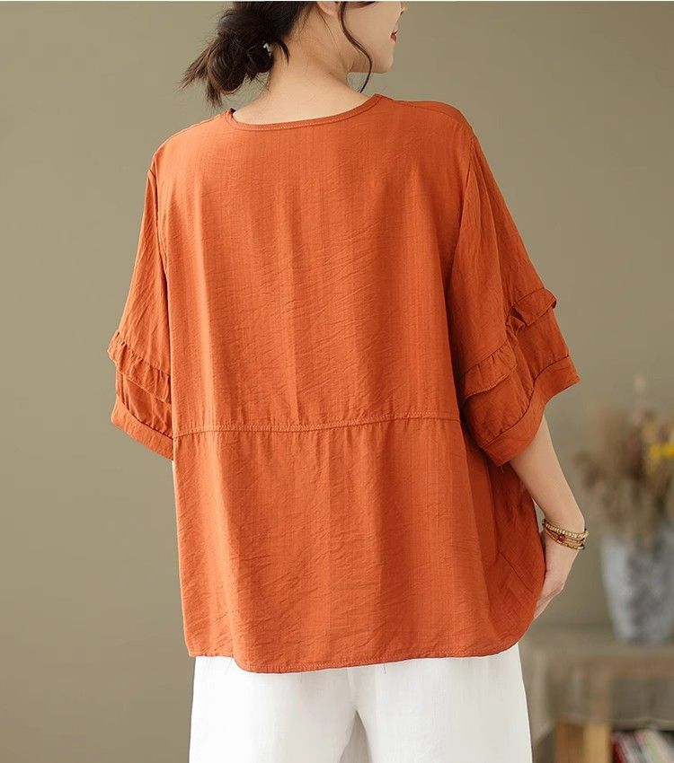 立體寬鬆顯瘦圓領排扣小衫【桔紅色】兩件(到手兩件,每件均價499元)
