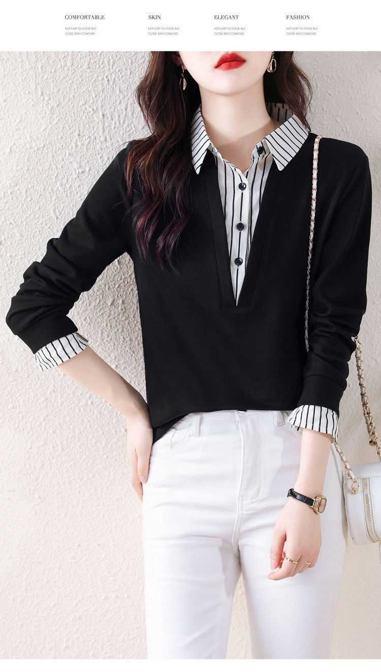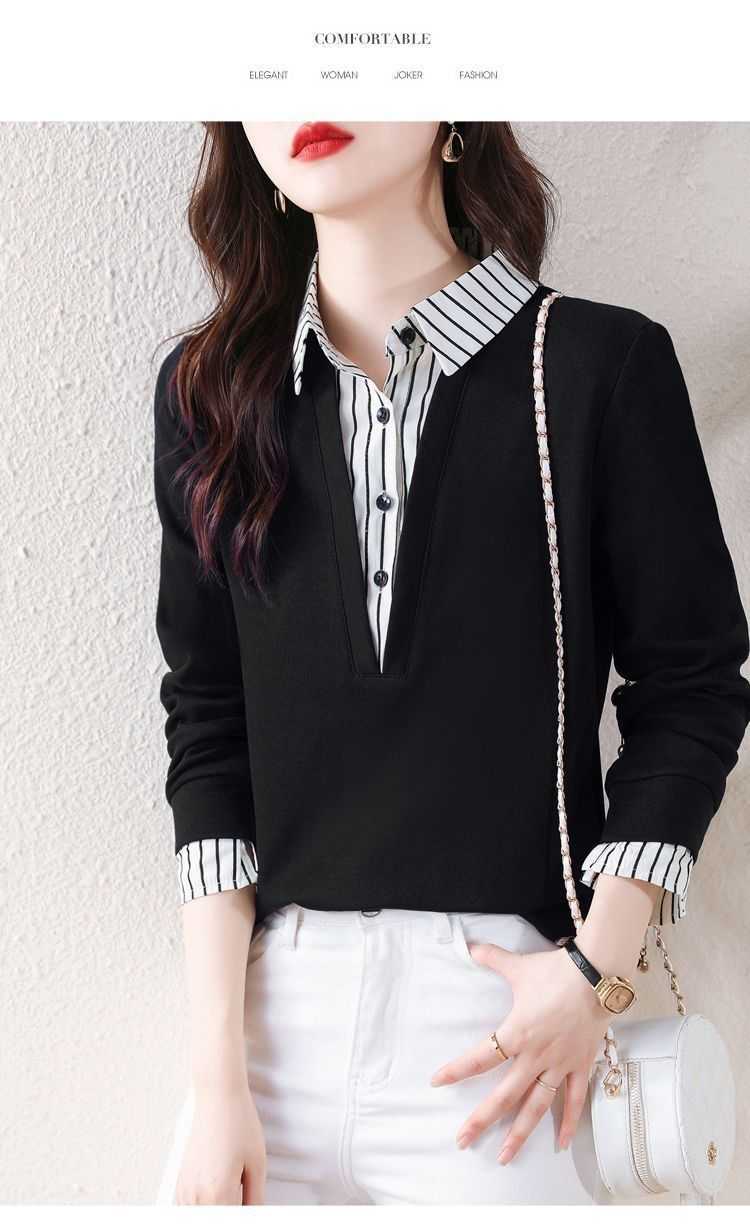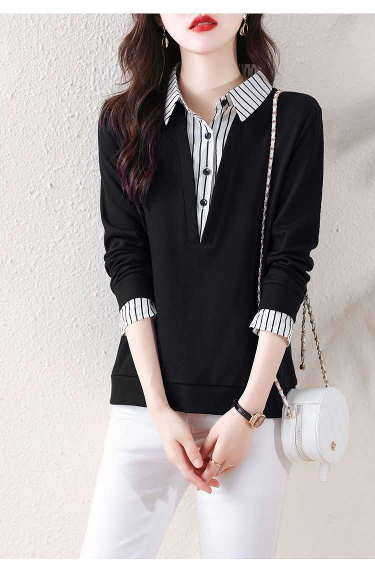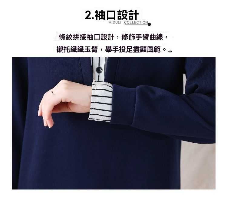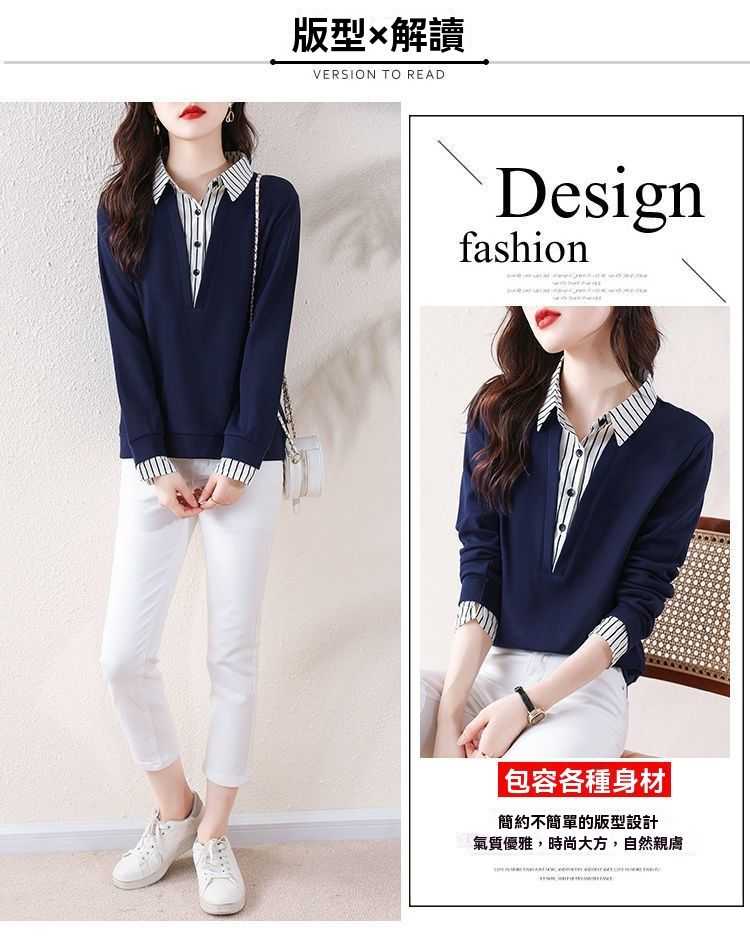 假兩件條紋時尚減齡拼接衛衣【買一送一】藏青色+黑色各一件(到手2件,每件均價649元!)