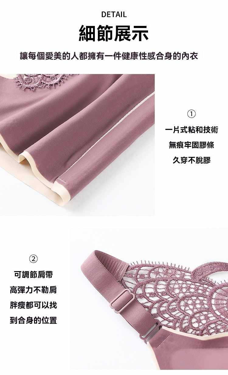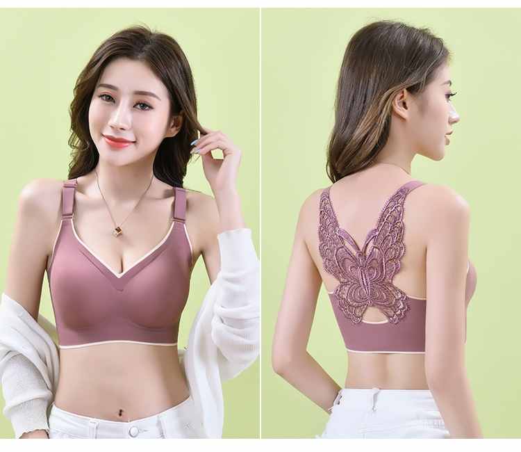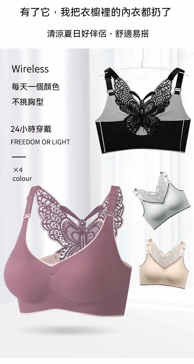 春夏蝴蝶美背聚攏大碼女士內衣【買一送二】【紫色】+【灰色】+【膚色】各一件(到手3件,每件均價333元!)