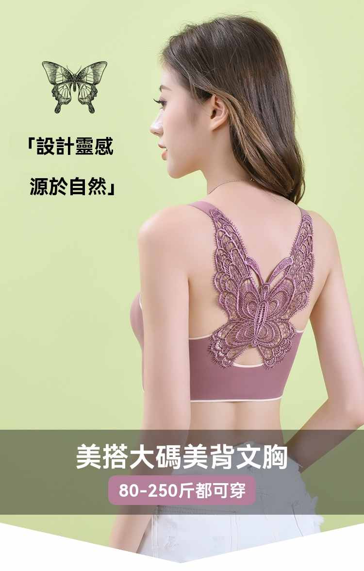 春夏蝴蝶美背聚攏大碼女士內衣【買一送二】【紫色】+【黑色】+【膚色】各一件(到手3件,每件均價333元!)
