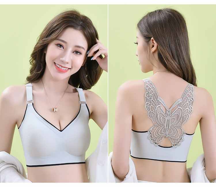 春夏蝴蝶美背聚攏大碼女士內衣【買一送二】【灰色】+【黑色】+【膚色】各一件(到手3件,每件均價333元!)