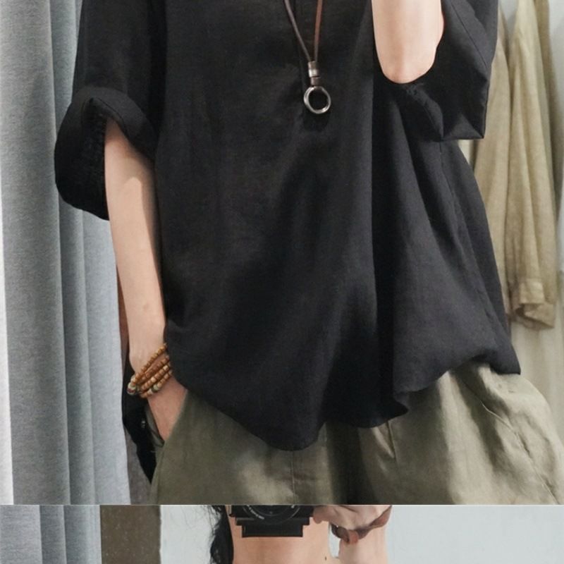 半袖棉麻休閒上衣【黑色】+【白色】各一件(到手兩件,每件均價499元)