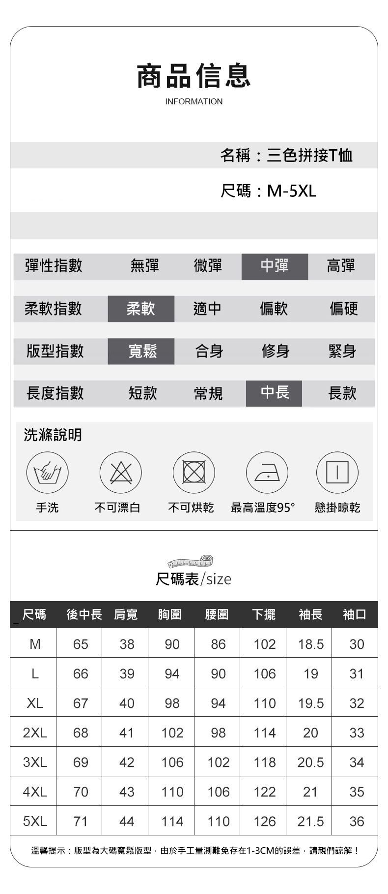 三色拼接中長款上衣【買一送一】【淺藍色】+【咖啡色】各一件(每件499元)