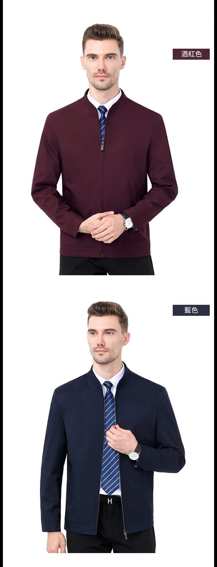 高級輕奢男士行政商務夾克外套【買一送一】藍色+酒紅色各一件(到手兩件,每件649元!)