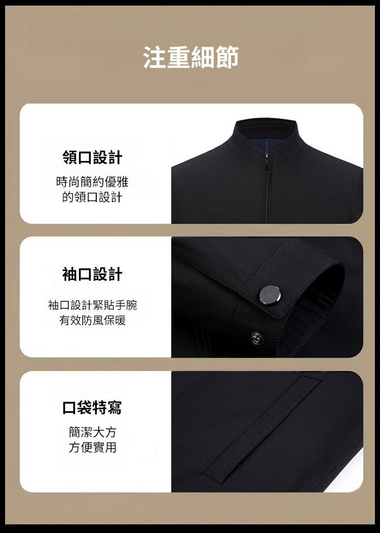 高級輕奢男士行政商務夾克外套【買一送一】黑色+卡其色各一件(到手兩件,每件649元!)