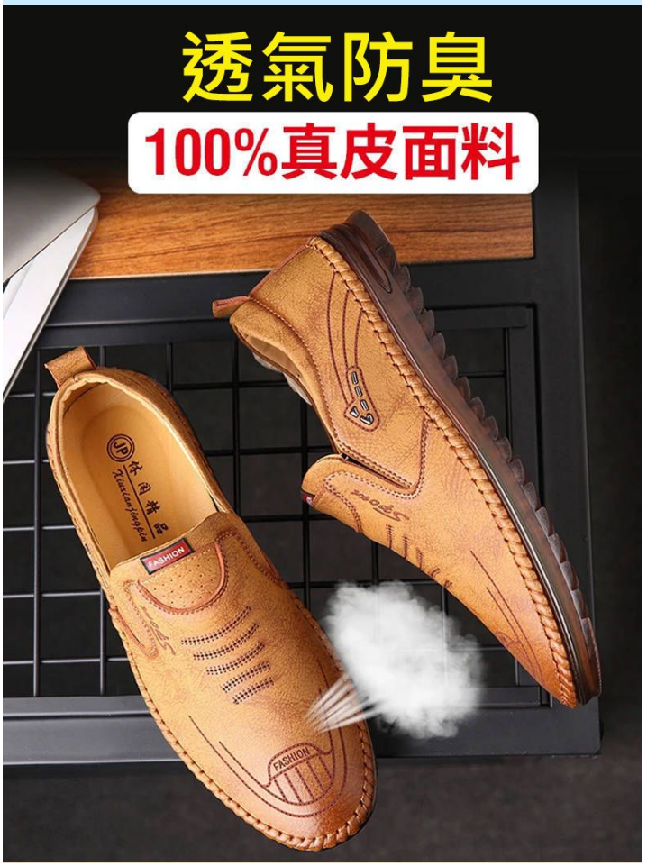 純牛皮男士潮流休閒鞋【買一送一!】【卡其色】+【黑色】各一雙(到手兩雙,每雙549元!)