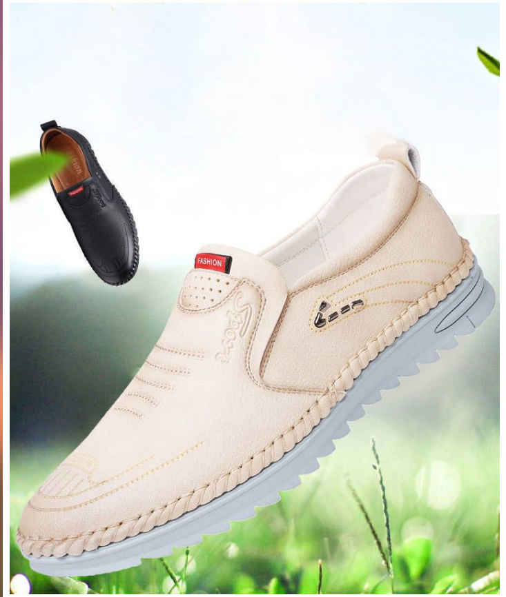 純牛皮男士潮流休閒鞋【買一送一!】【卡其色】+【米白色】各一雙(到手兩雙,每雙549元!)