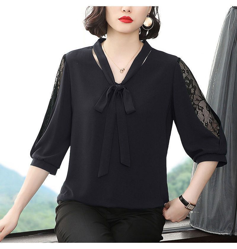 洋氣新款中年媽媽寬鬆遮肚雪紡衫【買一送一】黑色+紅色各一件(到手兩件,每件549元!)