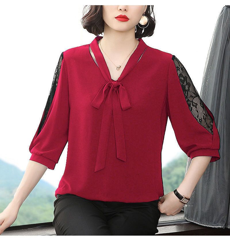 洋氣新款中年媽媽寬鬆遮肚雪紡衫【加200秒殺3件!】黑色+紅色+綠色各一件(到手3件,每件432元!)