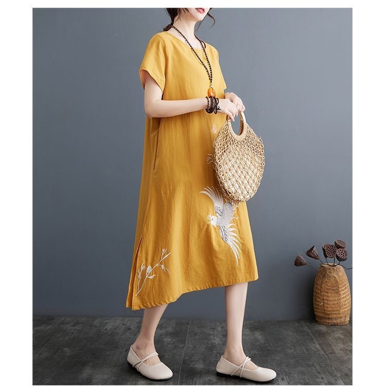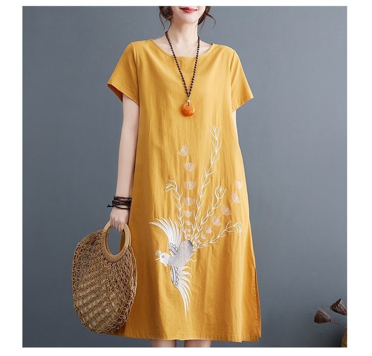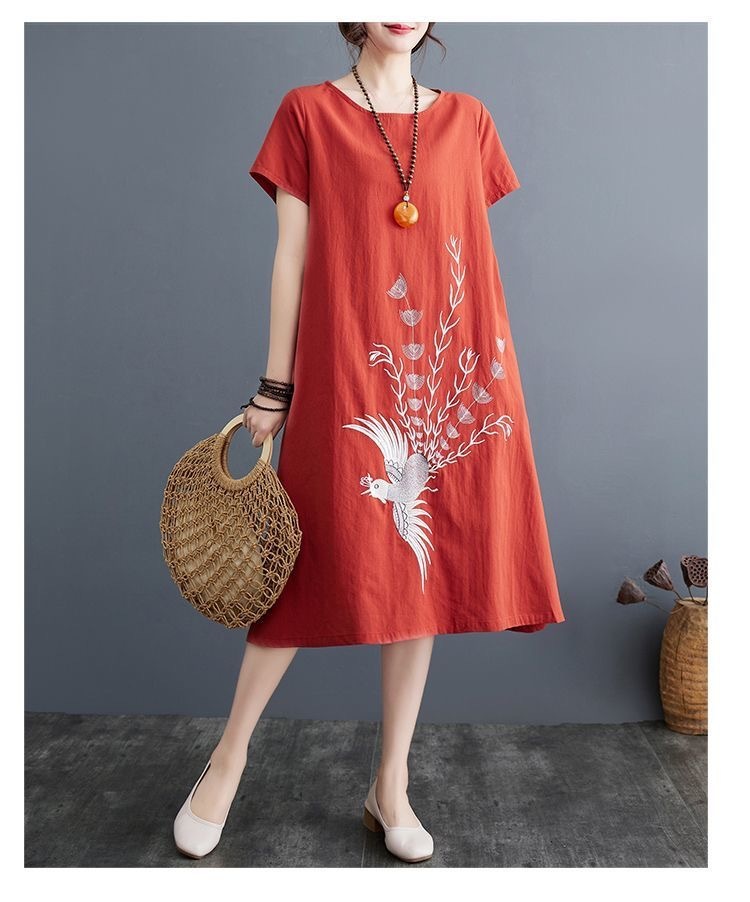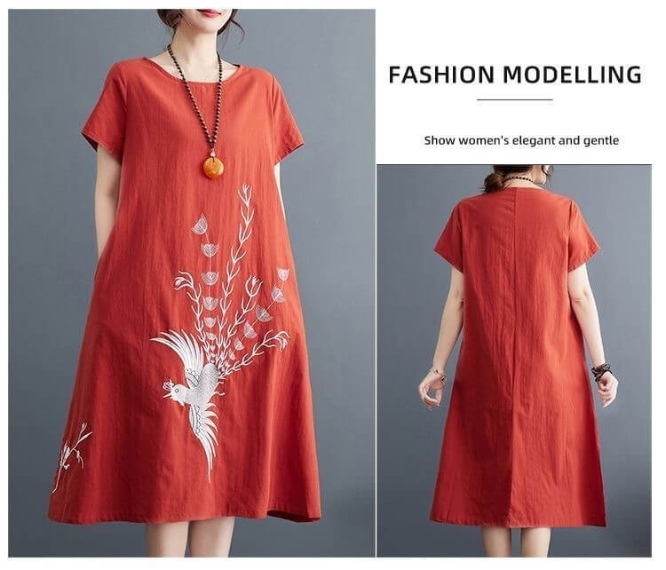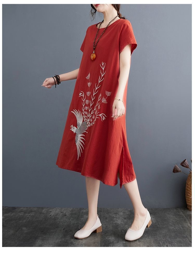 夏季遮肚顯瘦刺繡短袖連衣裙【紅色】+【黃色】各一件(到手兩件,每件均價549元)