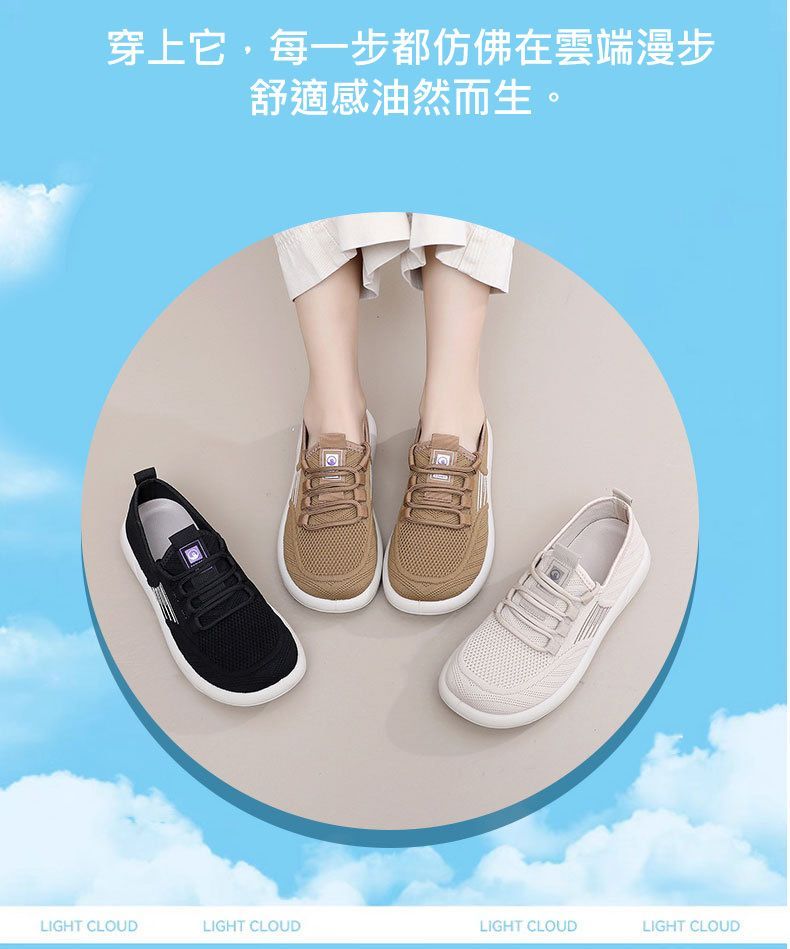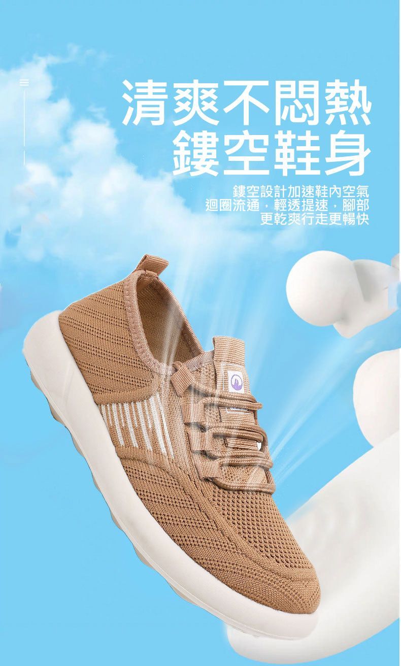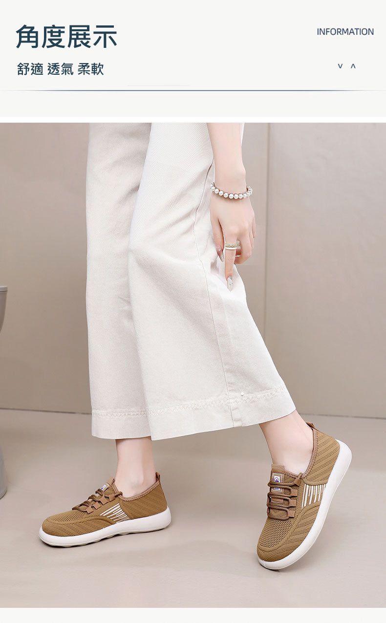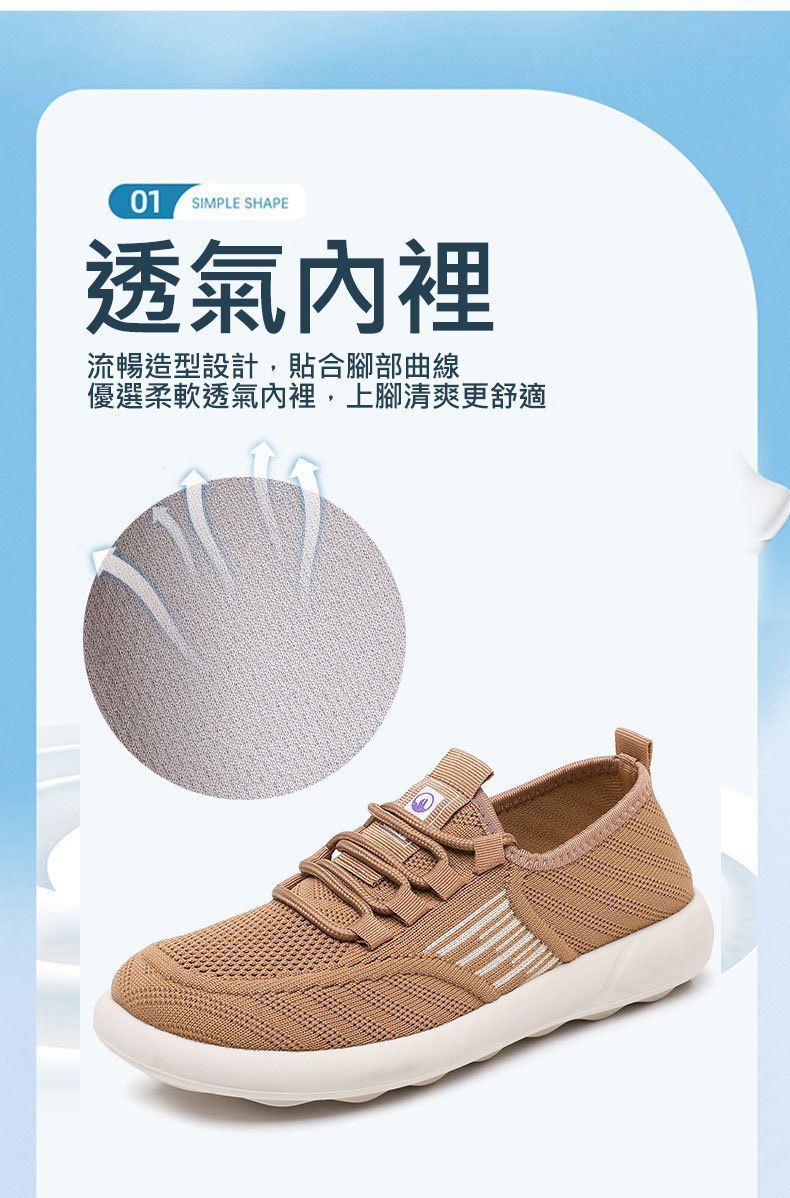 貼合腳部曲線舒適繫帶柔軟透氣飛織鞋【買一送一】【駝色】+【米白色】各一雙(到手兩雙,每雙均價549元!)