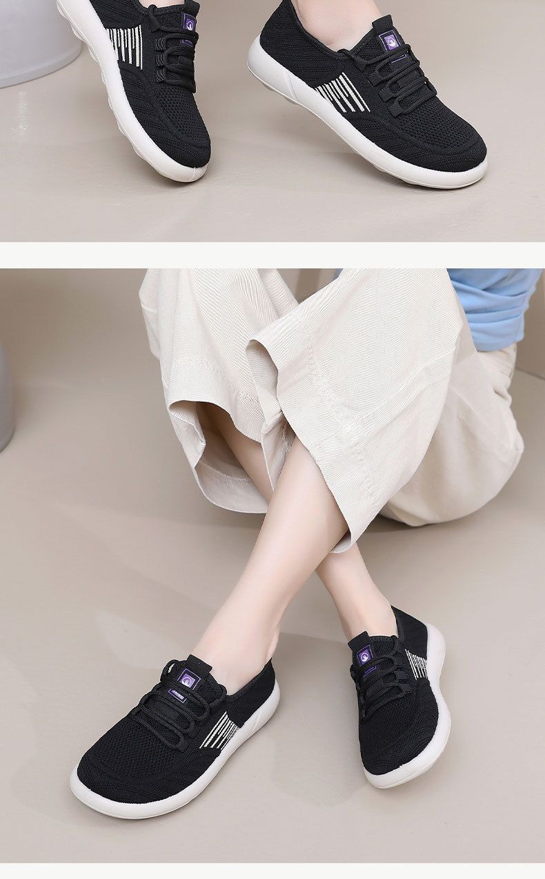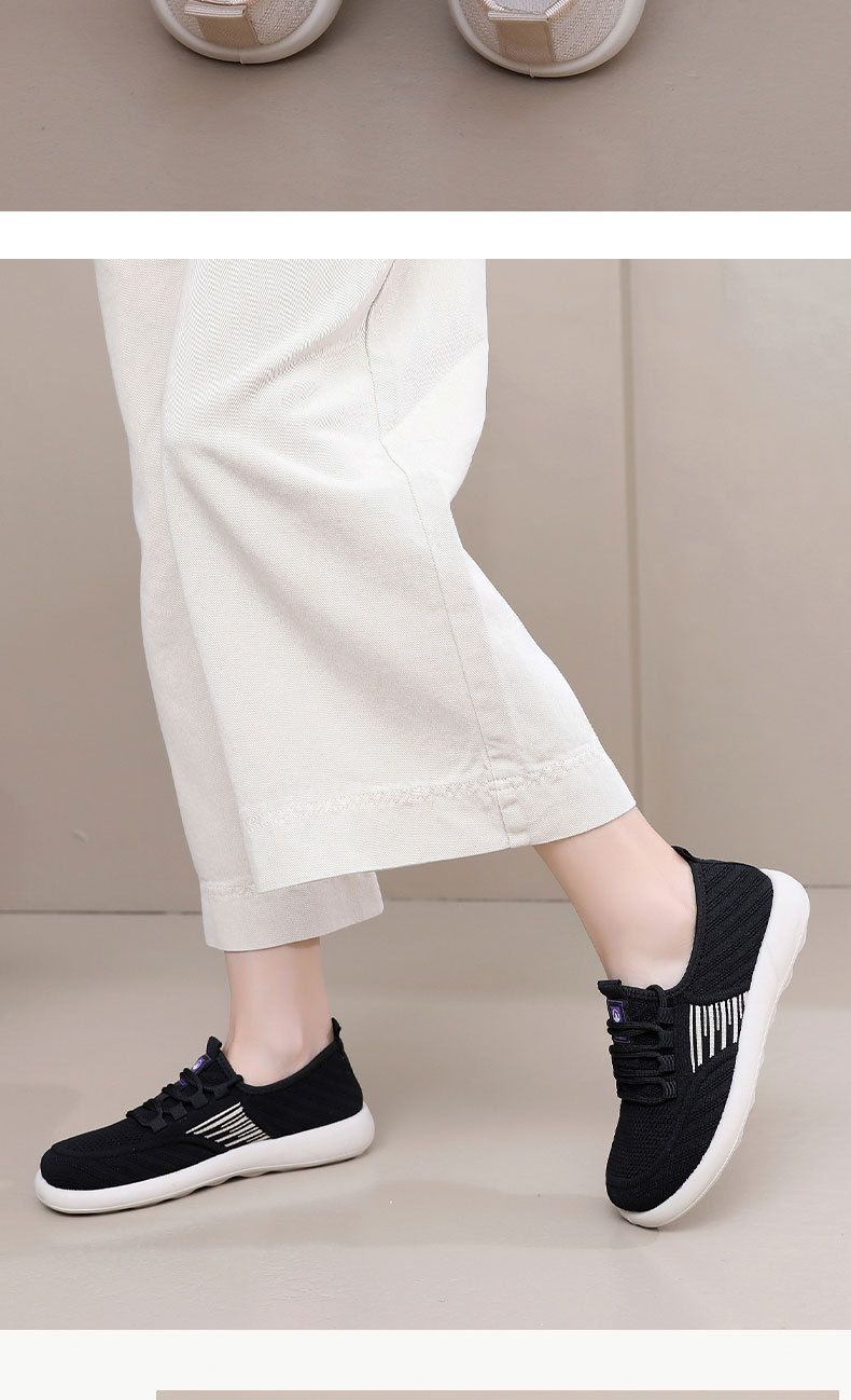 貼合腳部曲線舒適繫帶柔軟透氣飛織鞋【買一送一】【黑色】+【米白色】各一雙(到手兩雙,每雙均價549元!)
