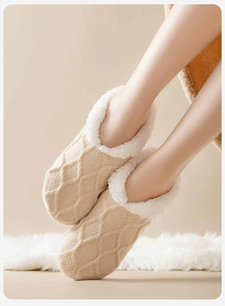 防滑舒適辦公居家加絨保暖襪【奶白色】+【杏色】各一組(到手2組,每組均價399元)
