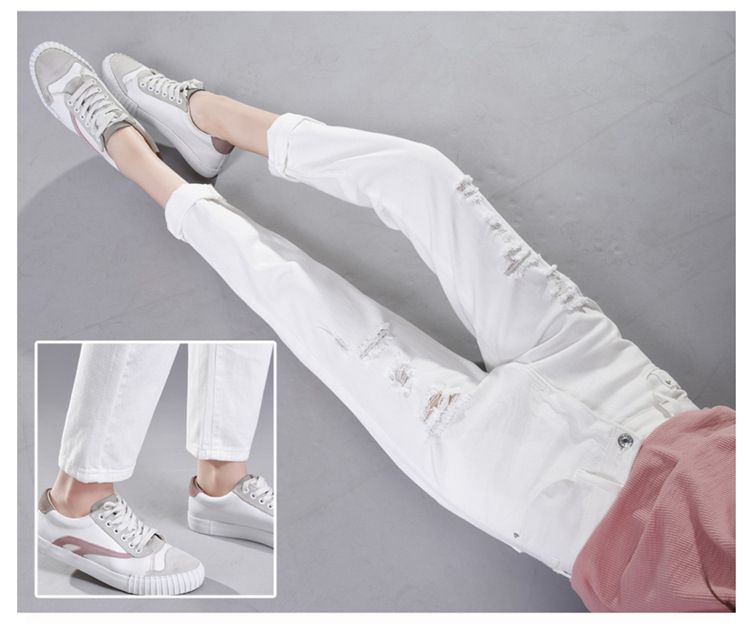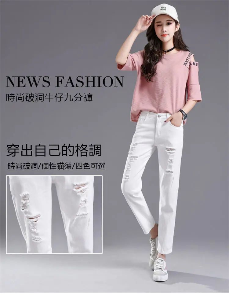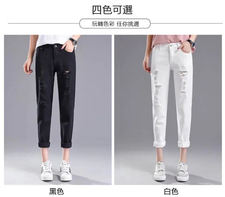 顯高顯瘦經典四色新款破洞牛仔褲【買一送一】【白色】+【黑色】各一條(到手兩條,每條均價649元)
