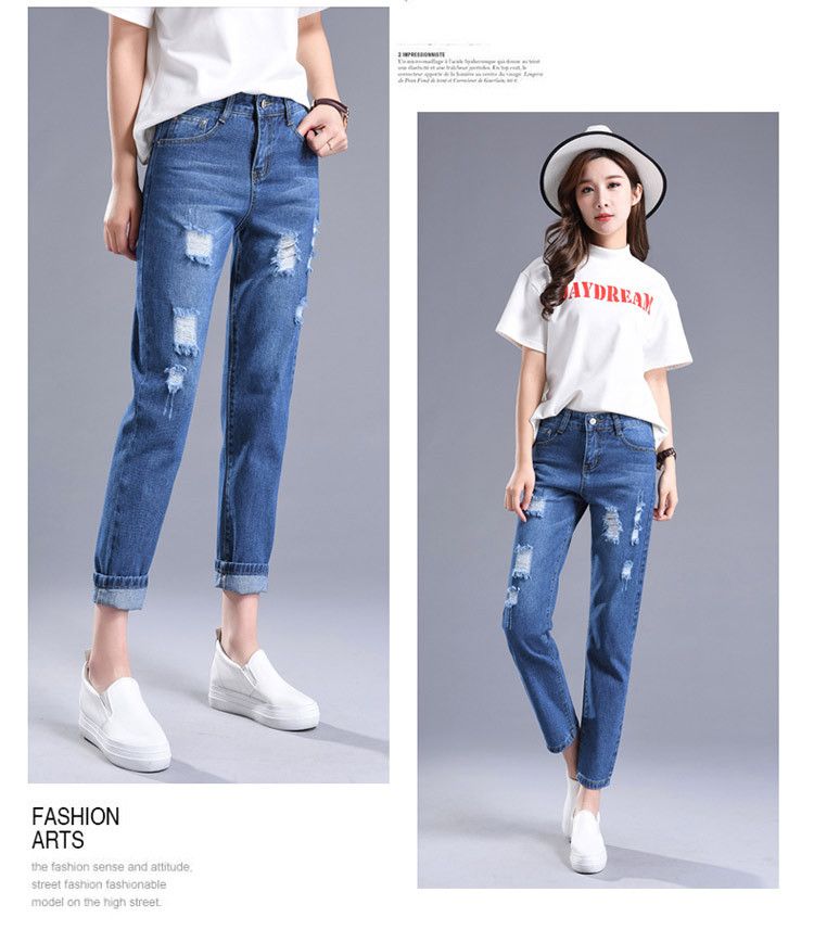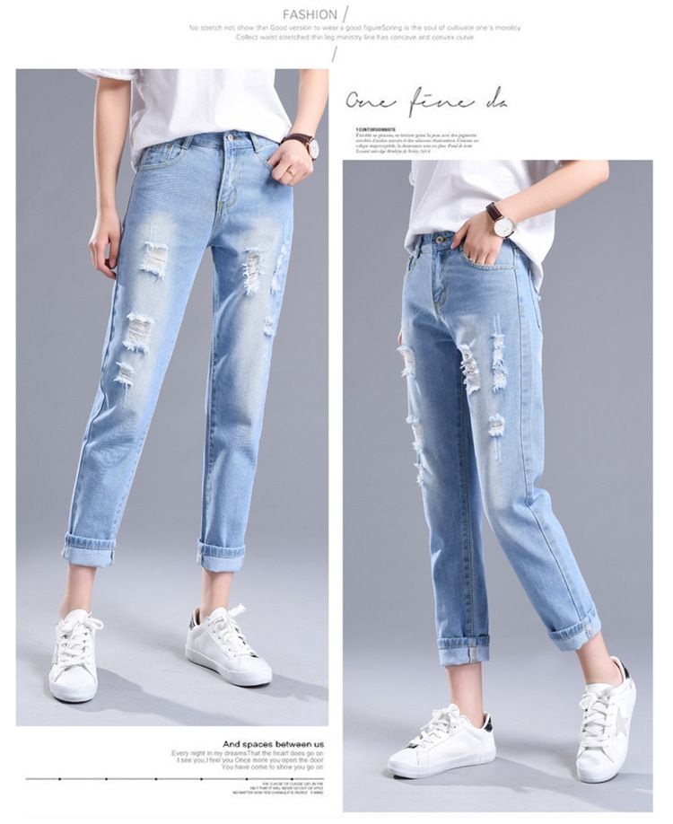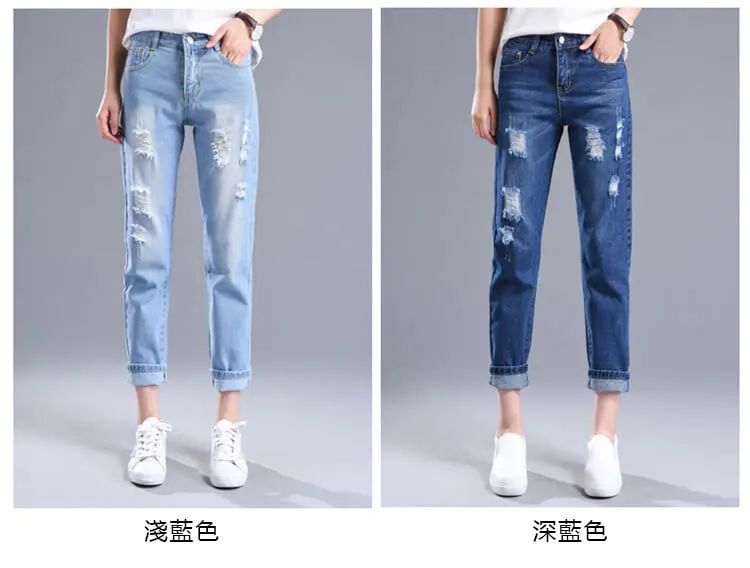 顯高顯瘦經典四色新款破洞牛仔褲【買一送一】【淺藍色】+【深藍】各一條(到手兩條,每條均價649元)