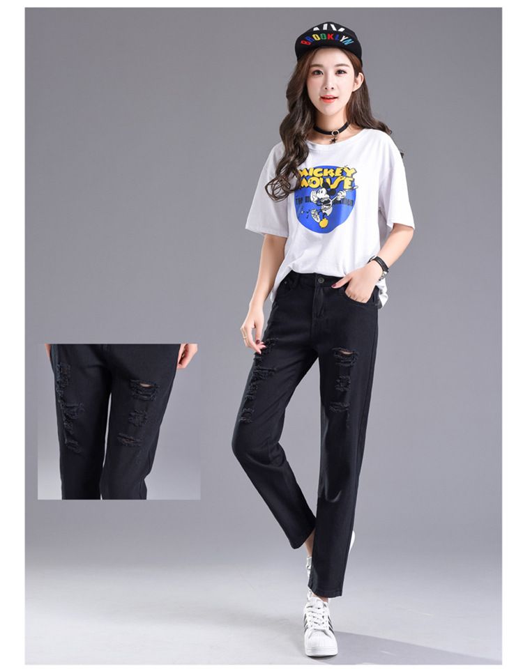 顯高顯瘦經典四色新款破洞牛仔褲【買一送一】【黑色】+【淺藍】各一條(到手兩條,每條均價649元)