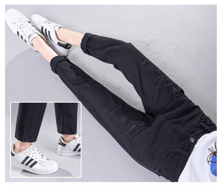 顯高顯瘦經典四色新款破洞牛仔褲【買一送一】【黑色】+【深藍】各一條(到手兩條,每條均價649元)