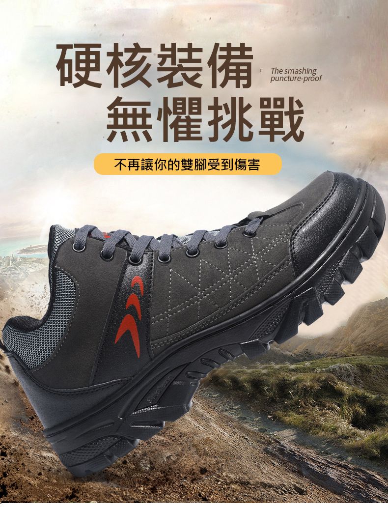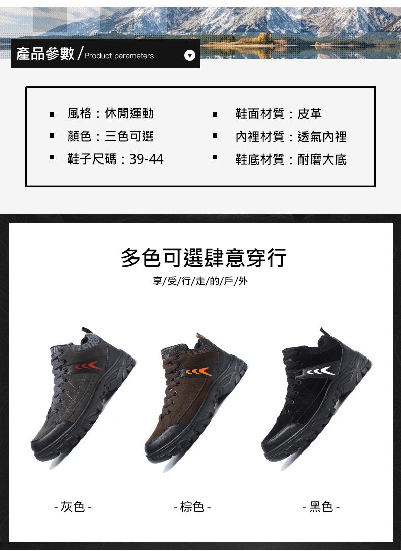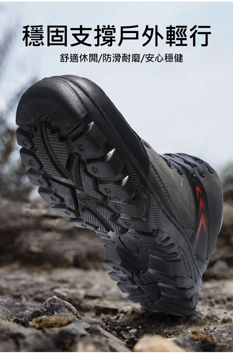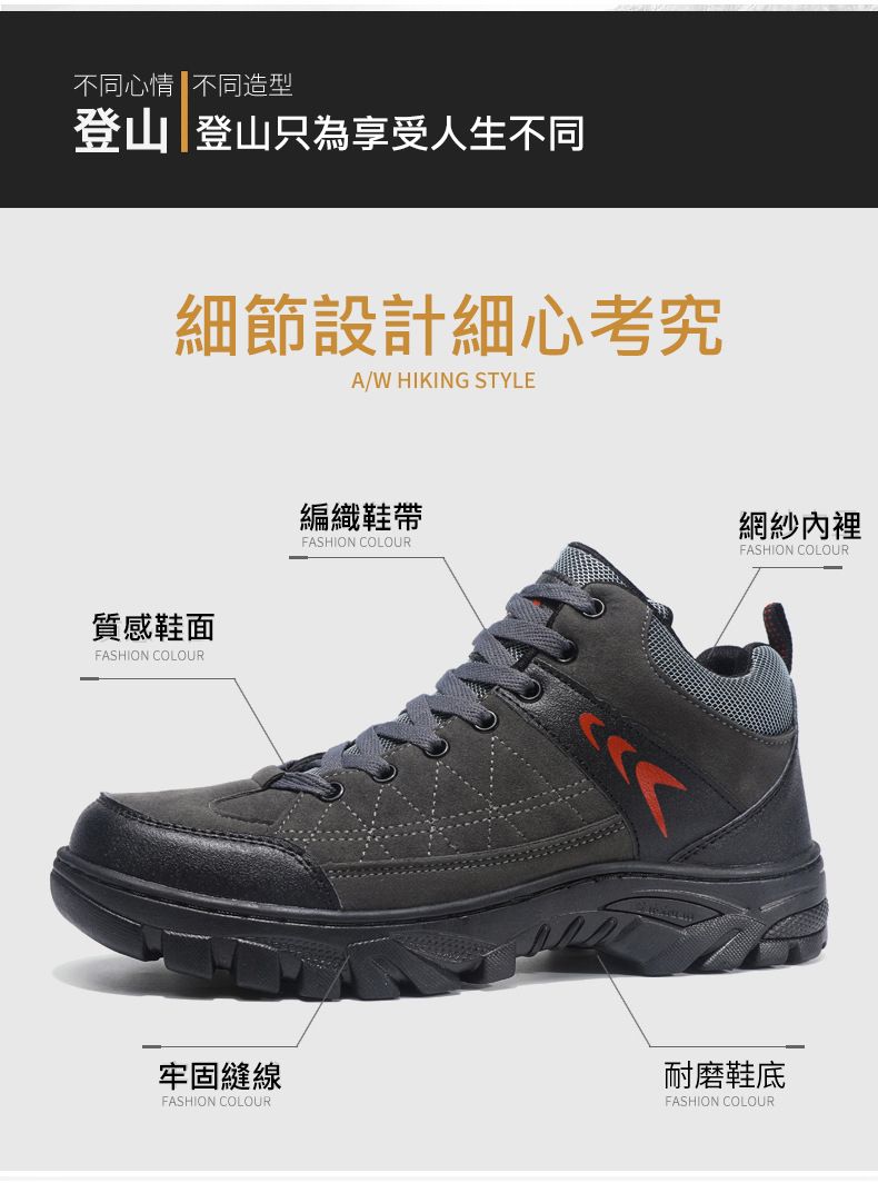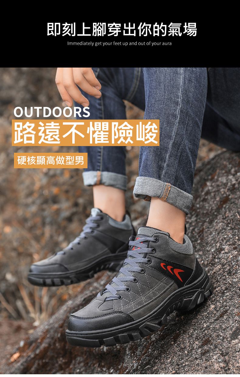 【硬核裝備】中幫繫帶耐髒戶外登山男鞋【黑色】+【灰色】各一雙(優惠400)