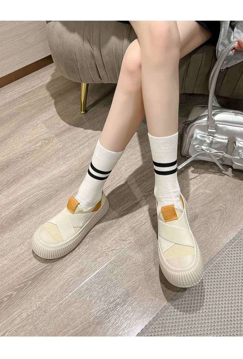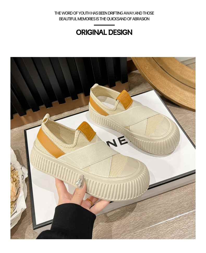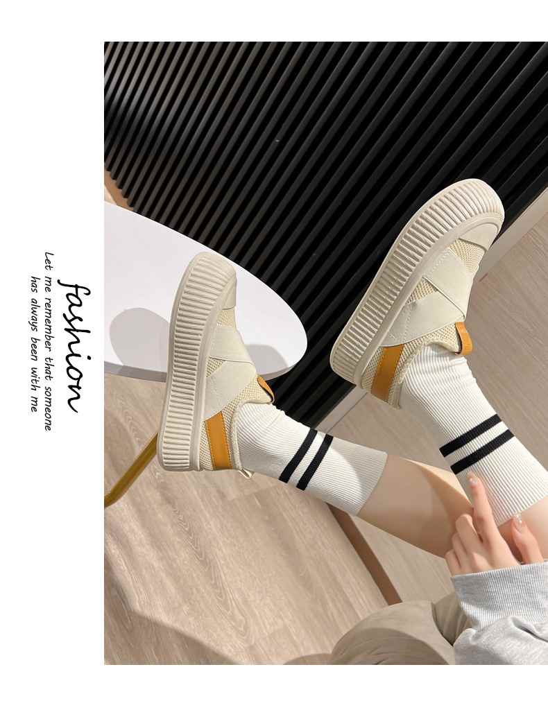 網面透氣厚底顯高潮搭女鞋【米色】2雙(到手2雙,每雙均價549元!)
