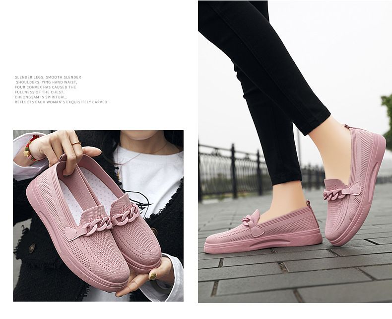 【手慢無!限時買一送一!】舒適飛織媽媽鞋【粉色】+【黑色】各一雙