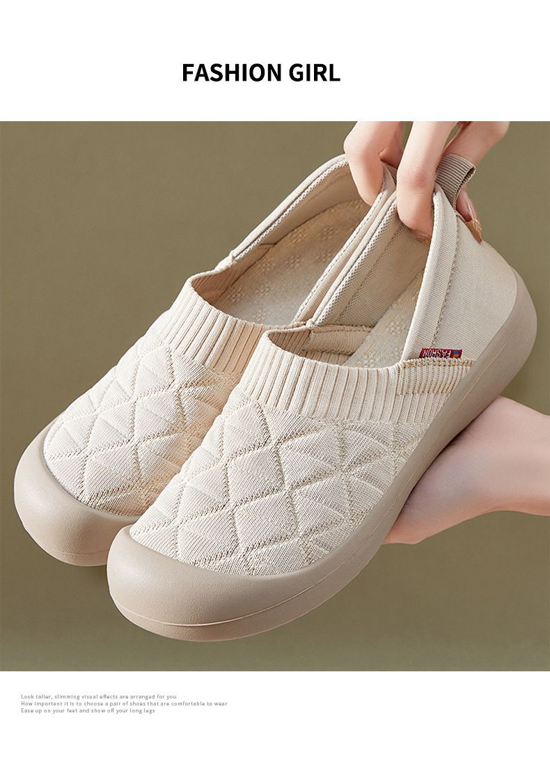 百搭輕便平底軟底一腳蹬飛織鞋【買一送一】【米色】+【黑色】各一雙(到手兩雙,每雙均價549元!)