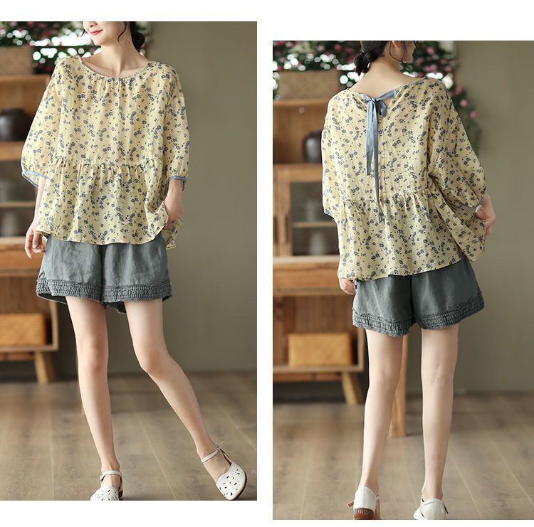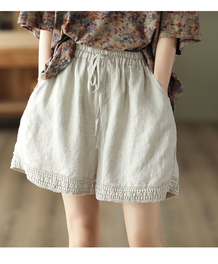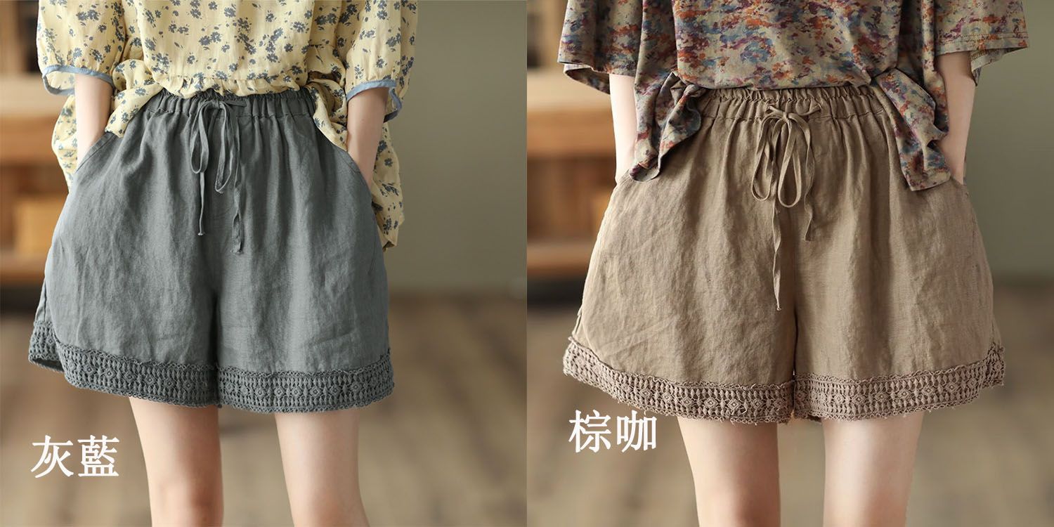 復古鏤空鉤花棉麻短褲【灰藍色】+【杏色】各一件(到手兩件,每件均價499元)