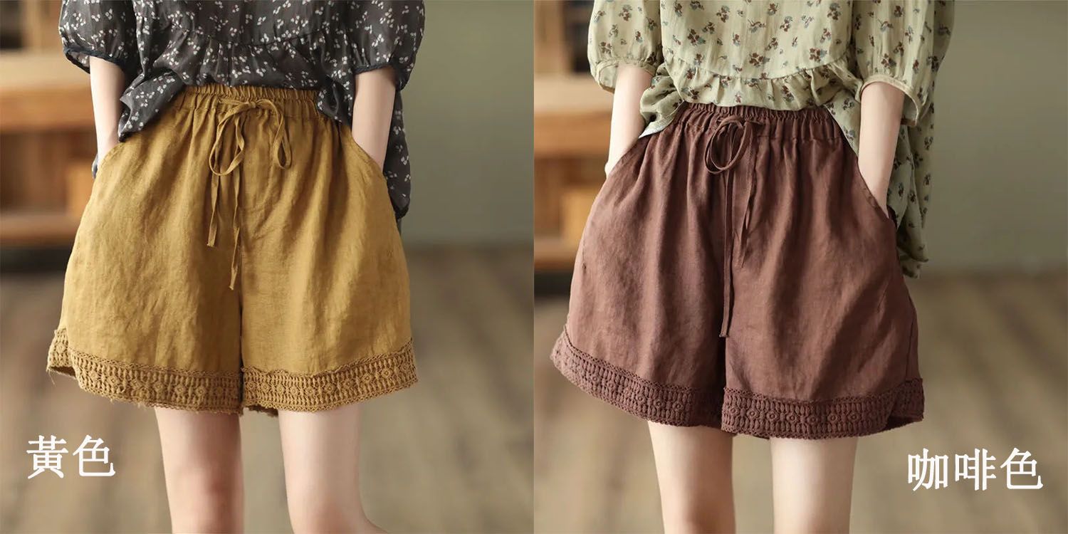 復古鏤空鉤花棉麻短褲【咖啡色】+【杏色】各一件(到手兩件,每件均價499元)