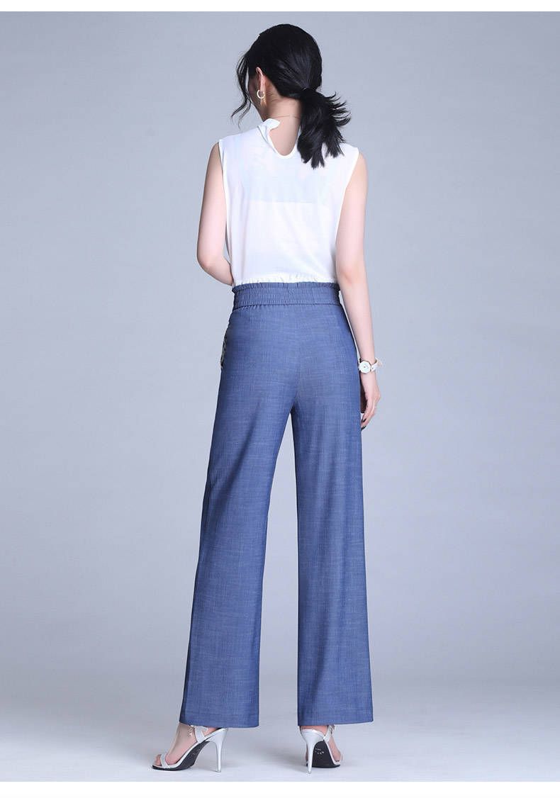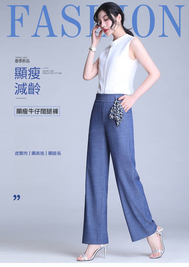 絲巾款垂感闊腿高腰直筒牛仔褲【買一送一】【深藍色】兩條(到手兩條,每條均價549元)