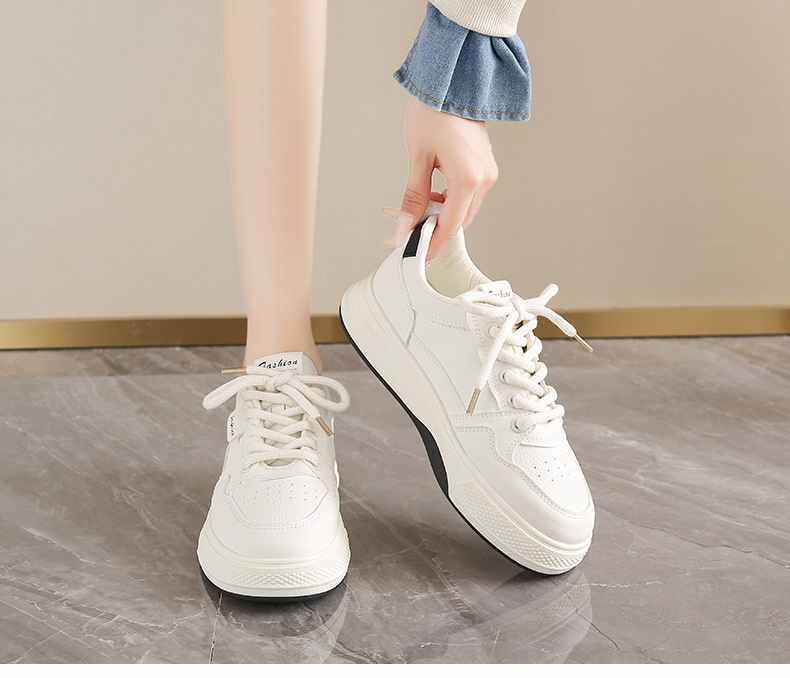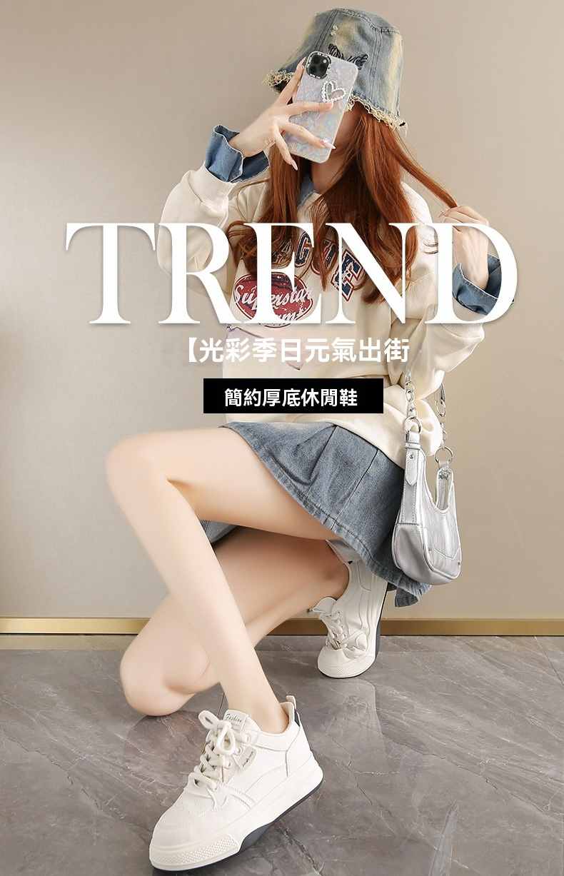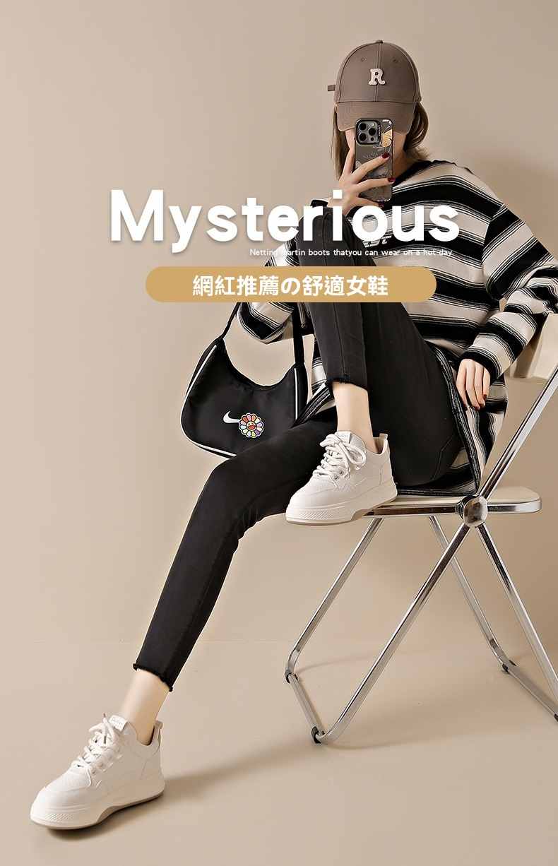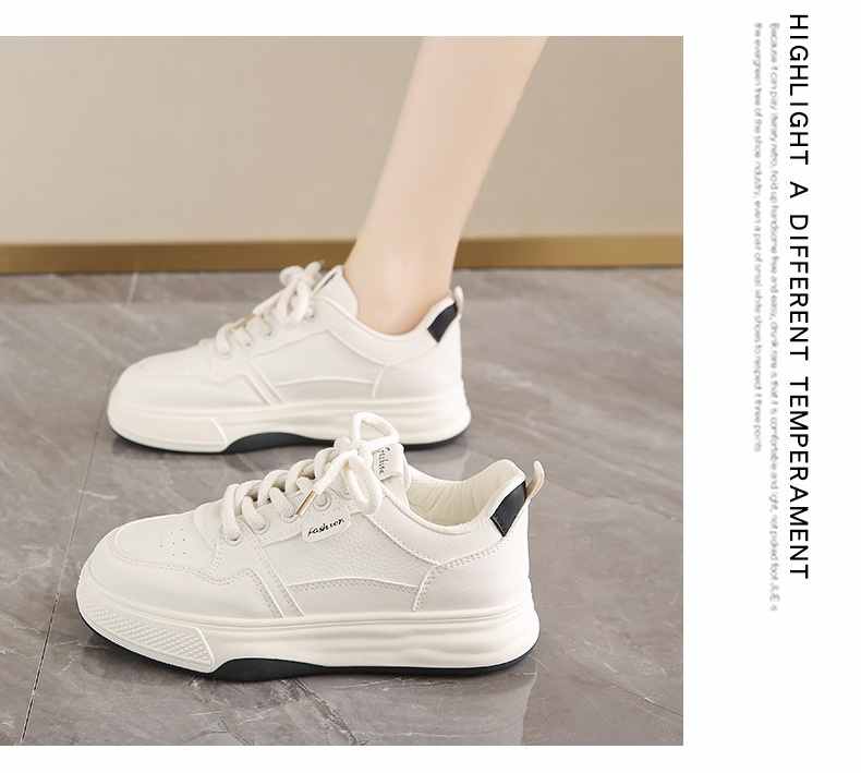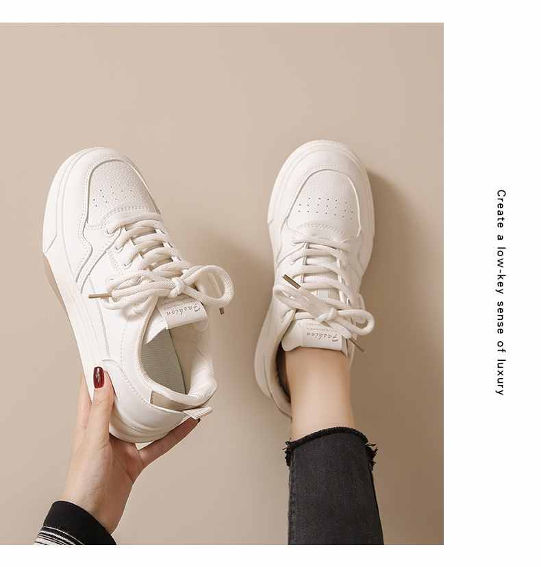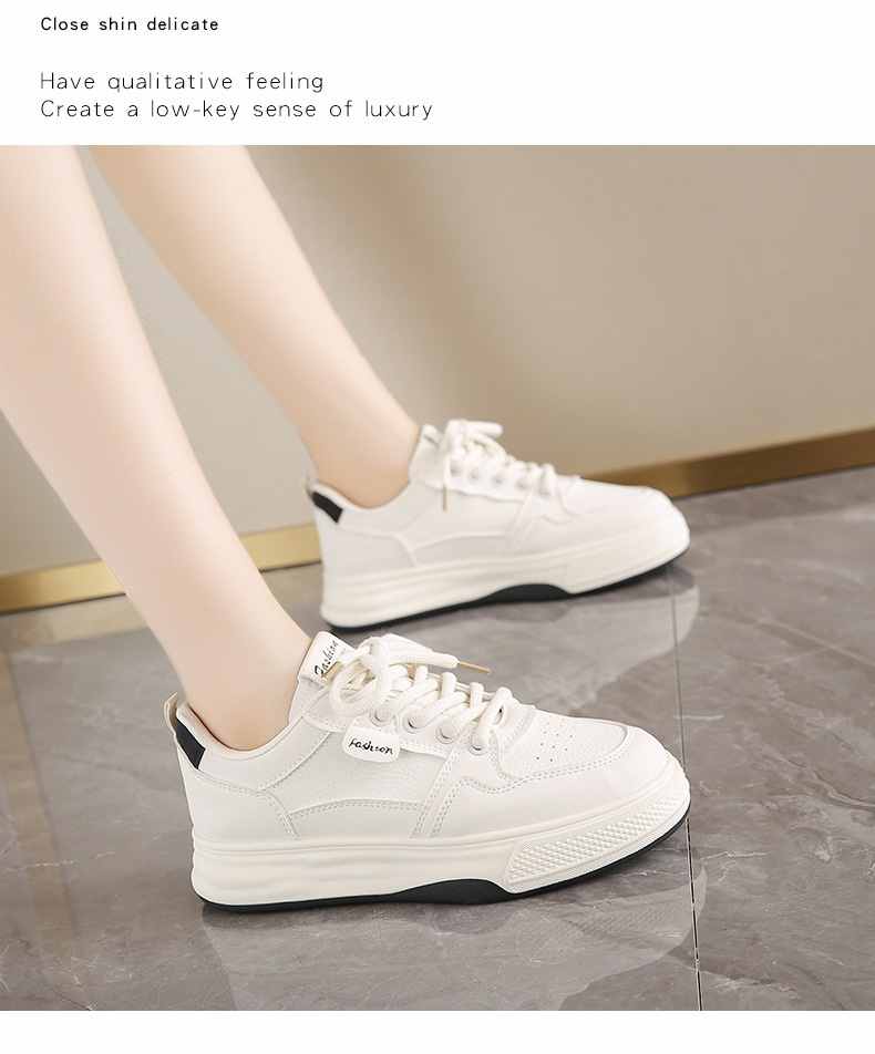 利落簡潔顯高厚底休閒女鞋【買一送一】【米杏色】+【米黑色】各一雙(到手兩雙,每雙均價549元!)