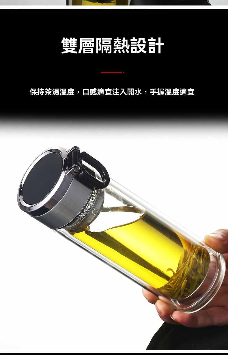 雙層玻璃提環茶水分離杯【買一送一】銀色+藍色各一組(到手2組,每組均價399元!)