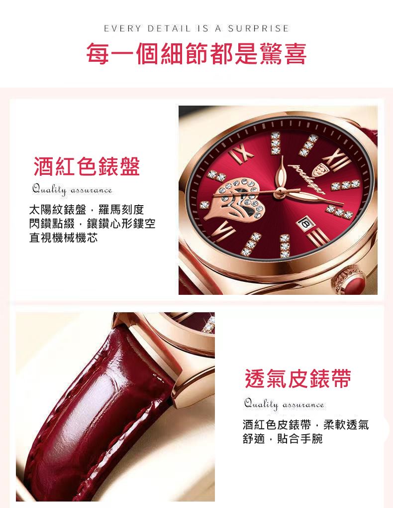 新款防水夜光日曆韓版女錶【皮帶玫金酒紅色】+【皮帶玫金白面】各一組(優惠400元)