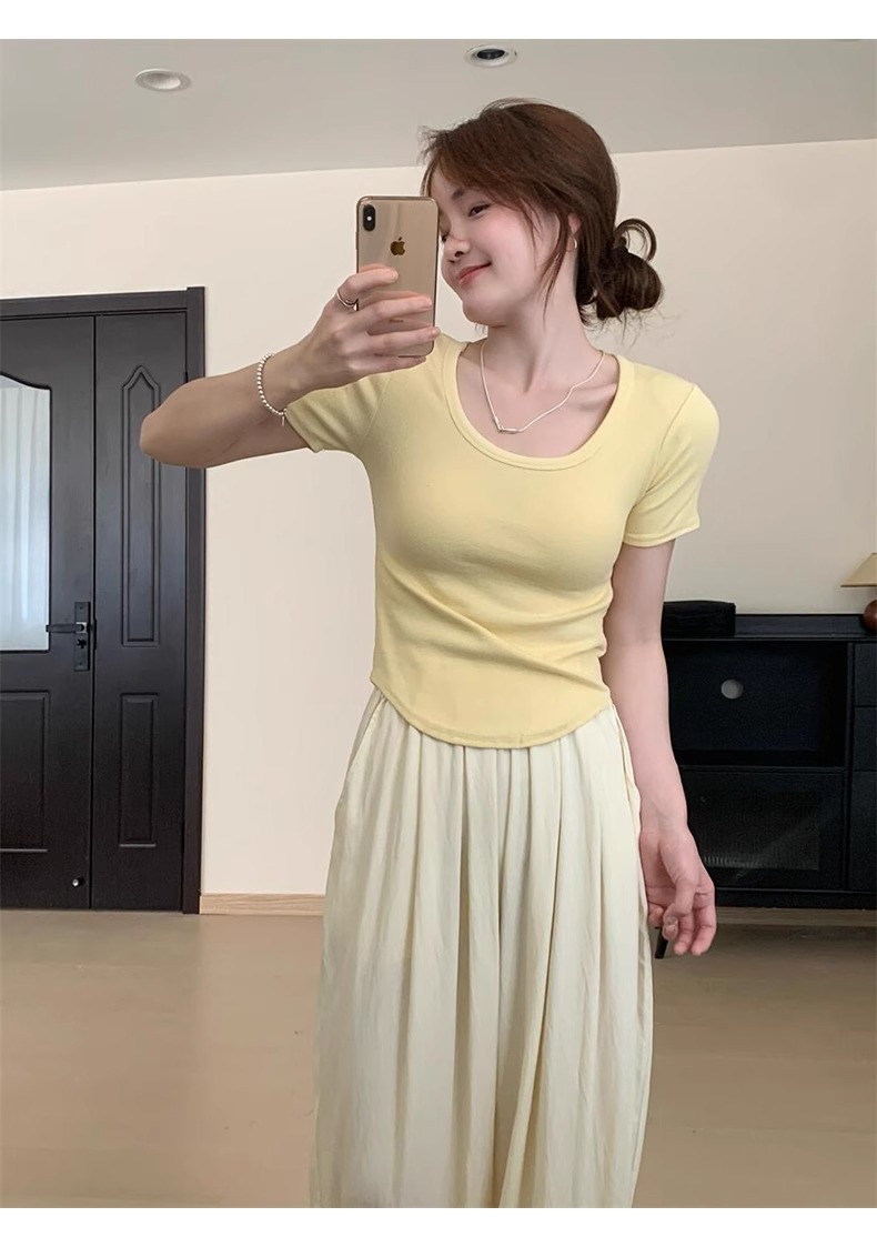 美式顯瘦修身設計感女士上衣【買一送三】黃色+灰色+白色+黑色各一件(到手4件!每件均價260元!)