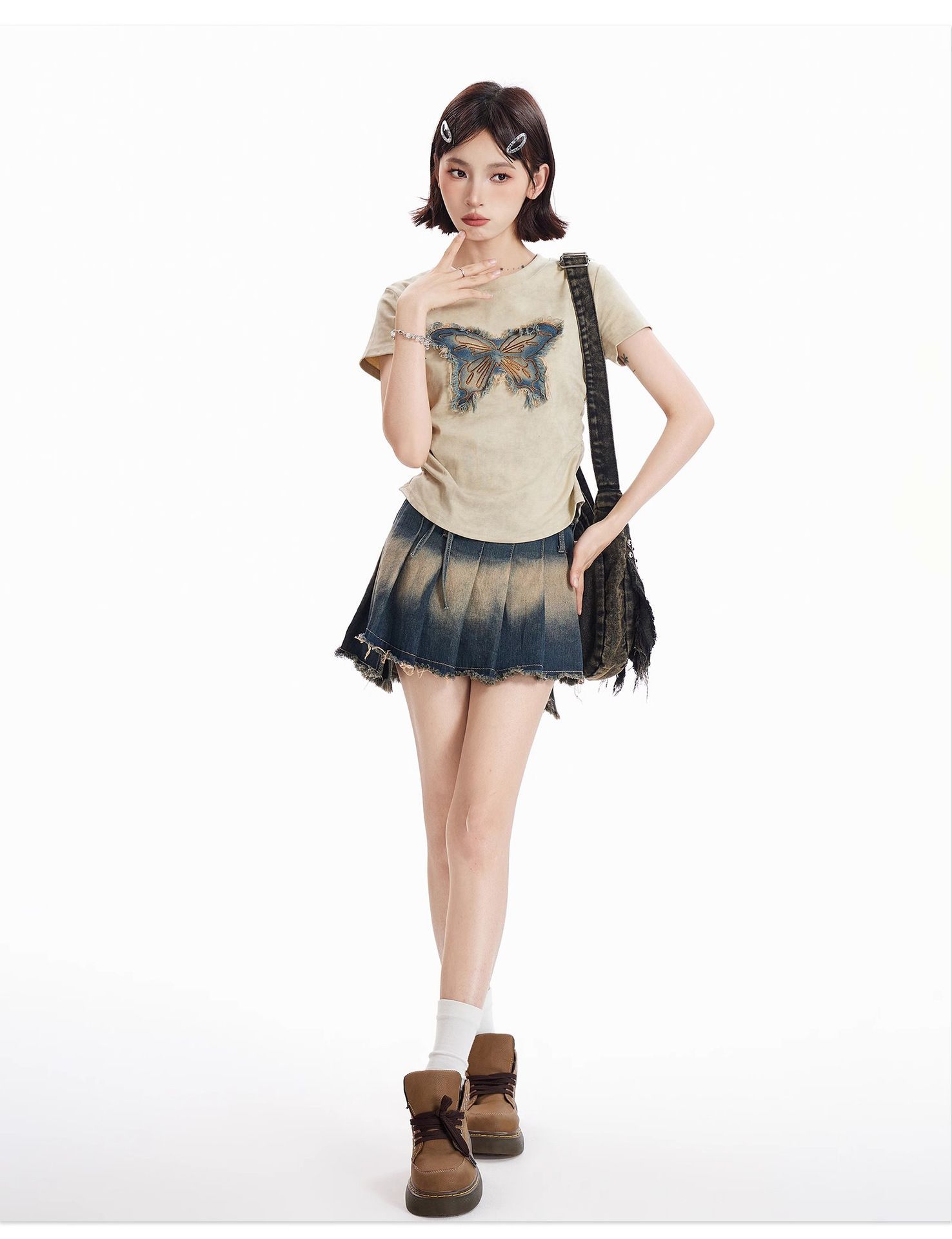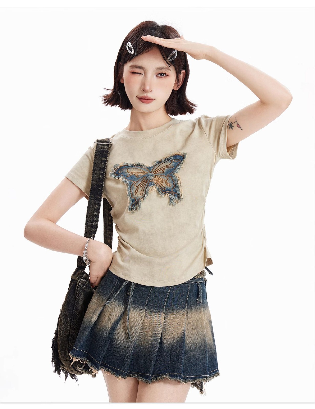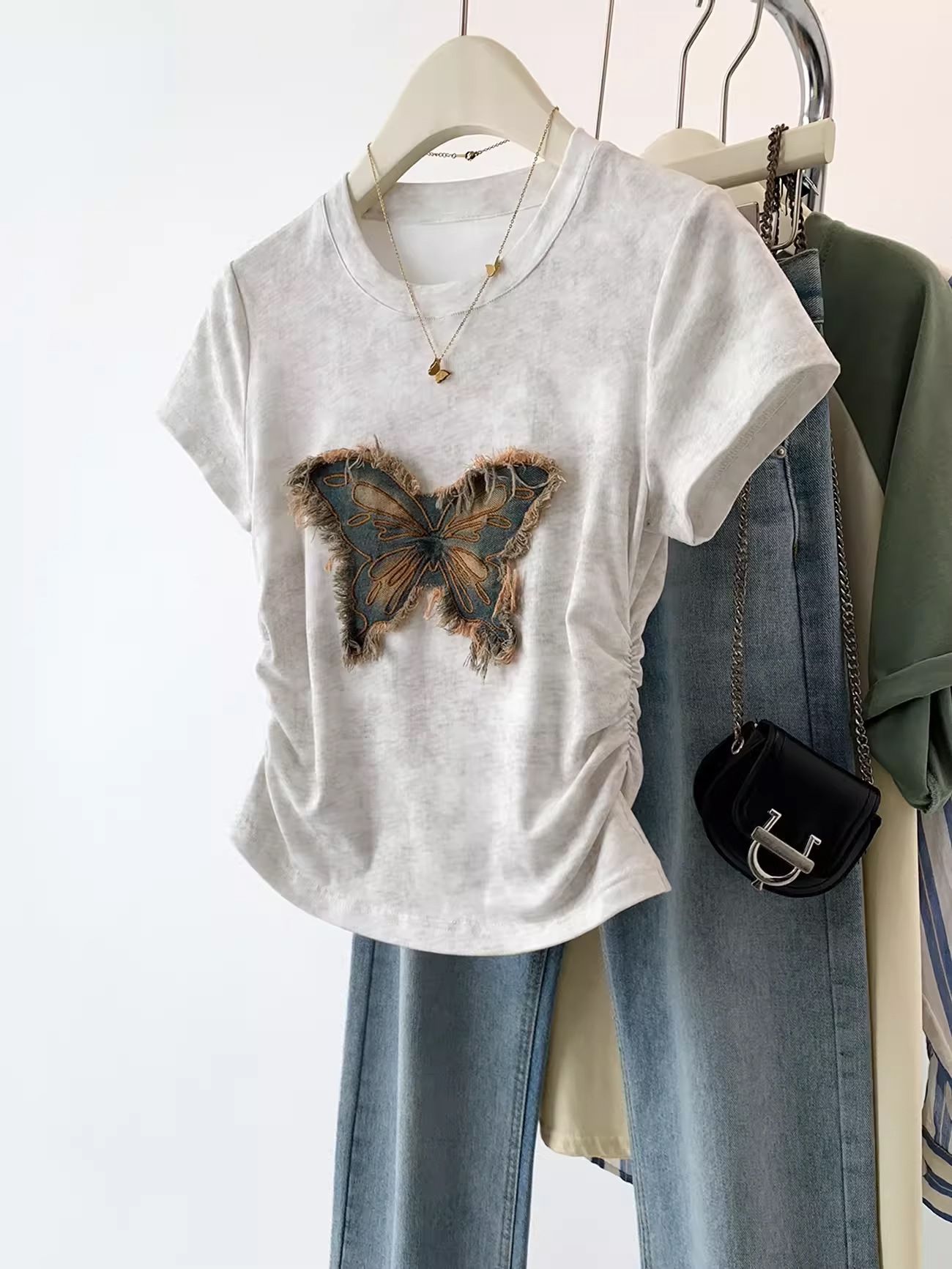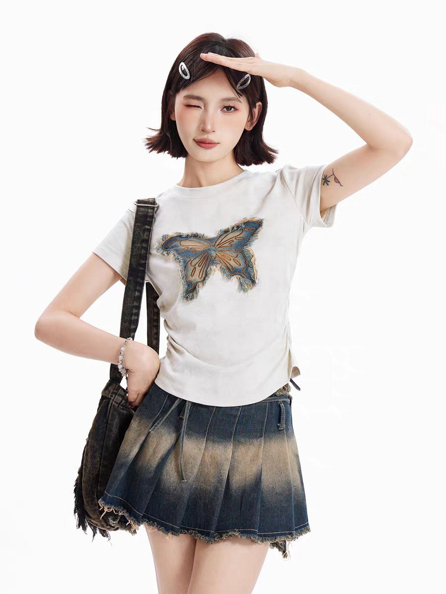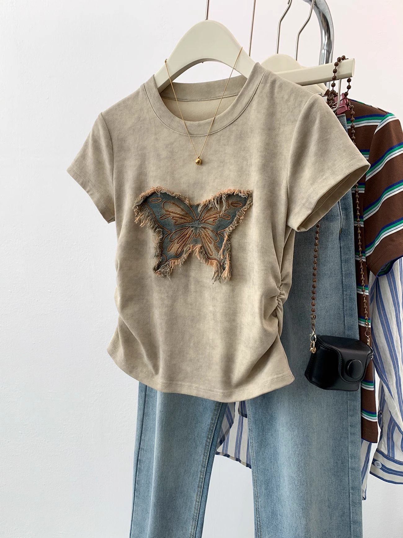 小個子修身短款蝴蝶短袖【買一送一】白色+卡其色各一件(到手兩件,每件均價499元)