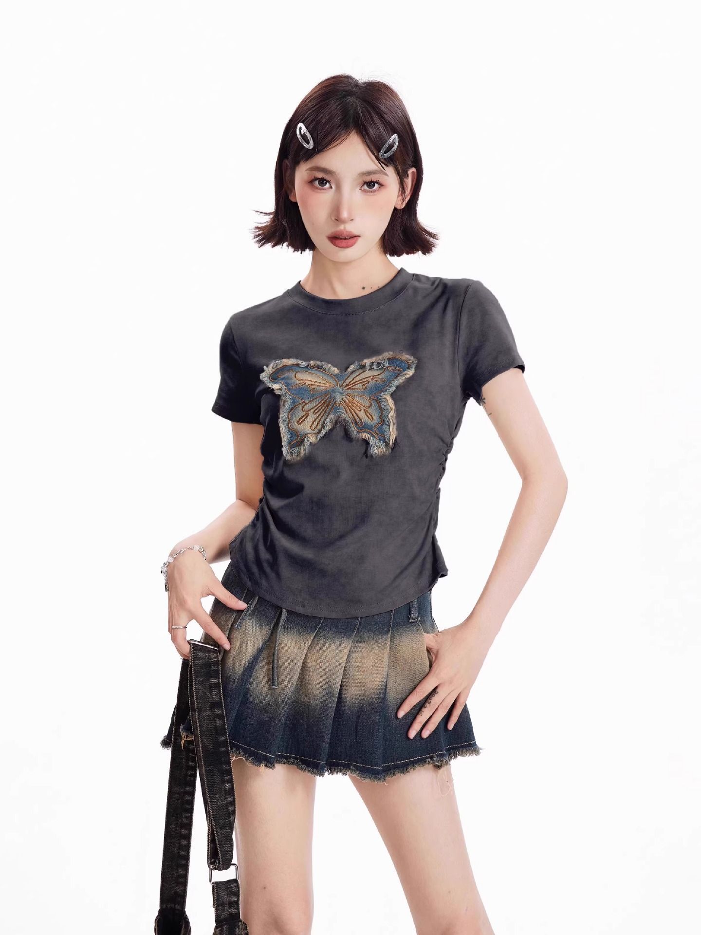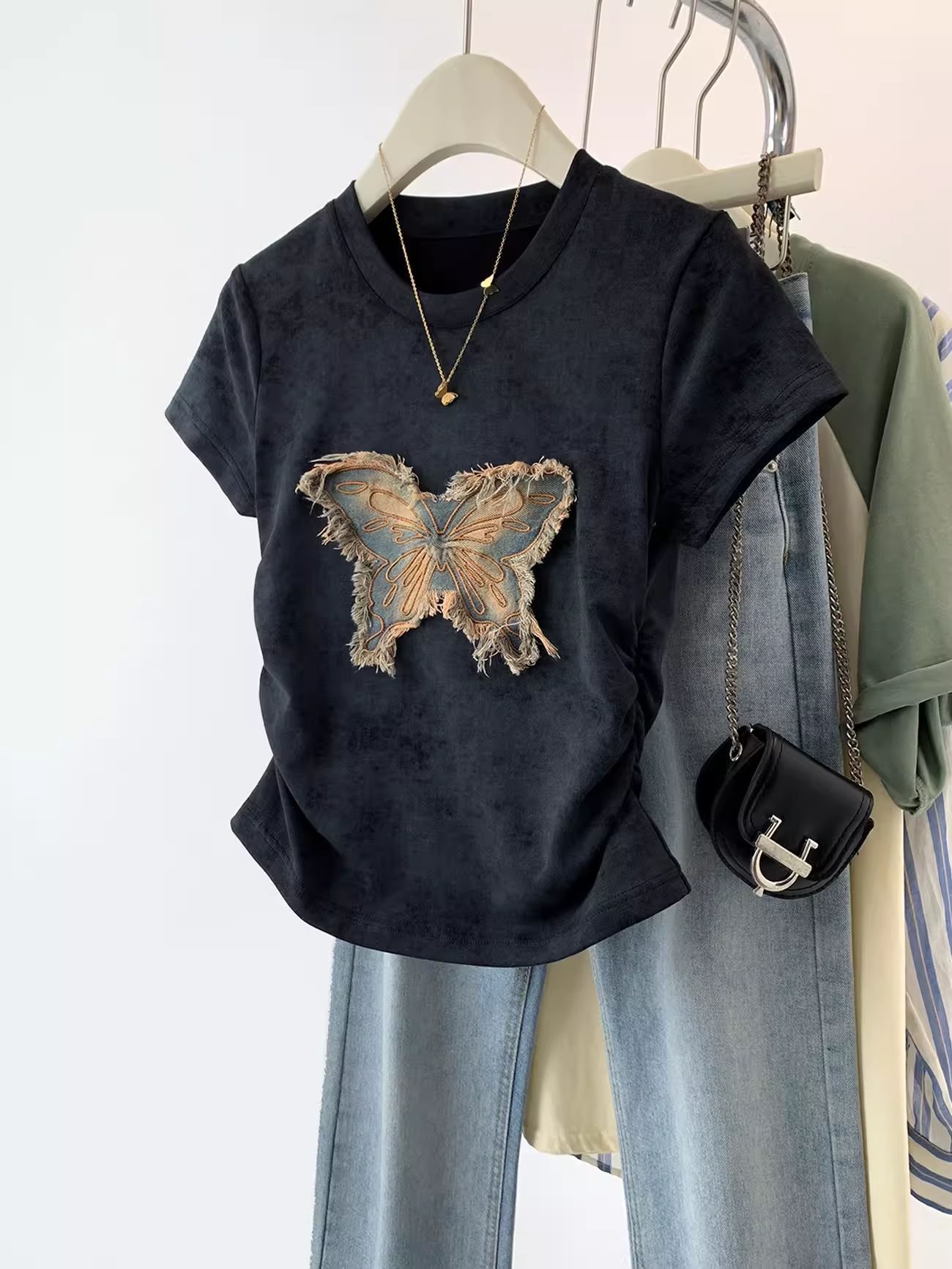 小個子修身短款蝴蝶短袖【買一送一】黑色+白色各一件(到手兩件,每件均價499元)
