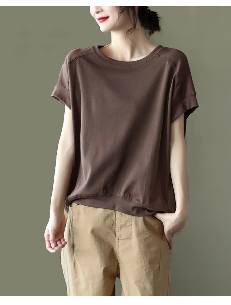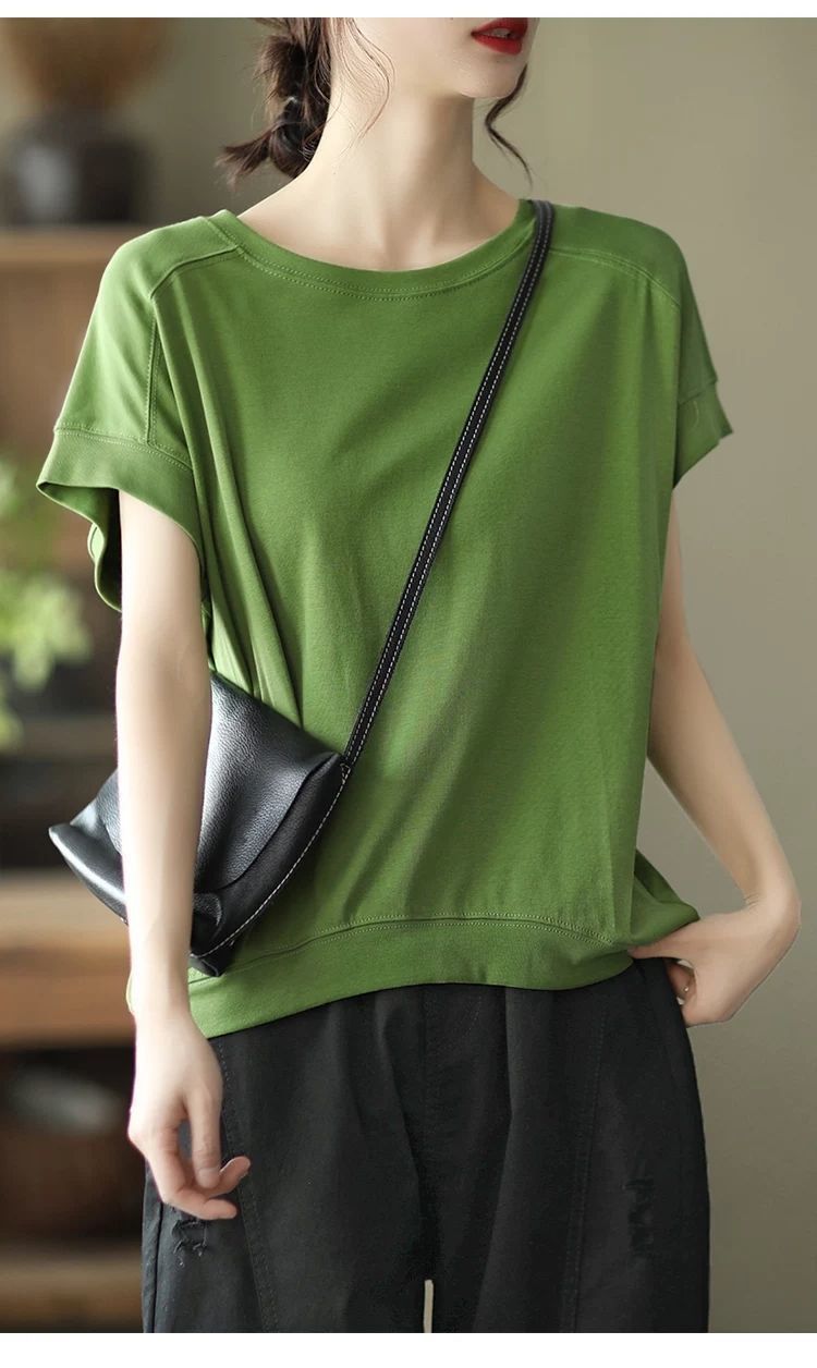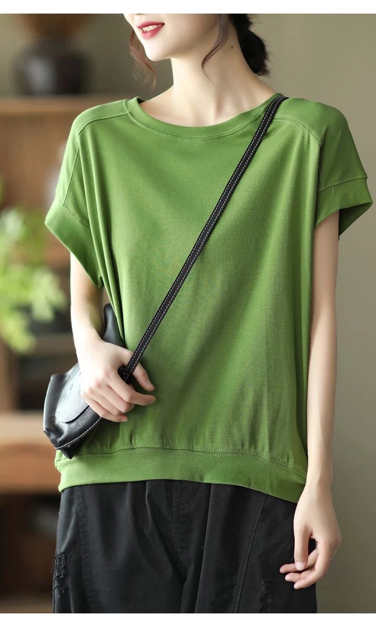 簡單大方圓領透氣純色T恤【買一送二】綠色+咖色+黑色各一件(到手三件,均價333元!)