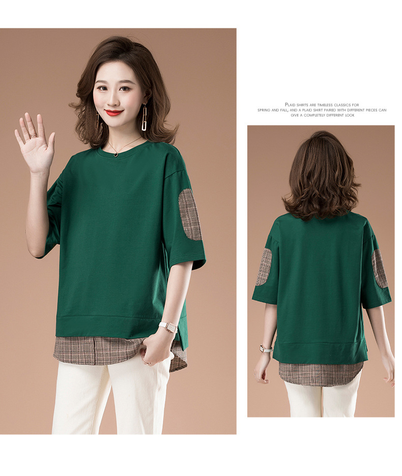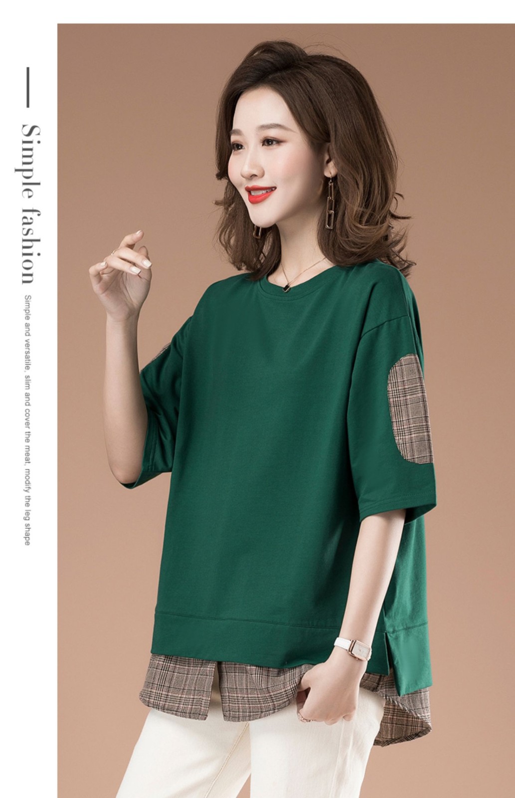 休閒寬鬆設計感假兩件T恤【買一送一】【綠色】+【紅色】各一件(到手兩件,每件均價549元)