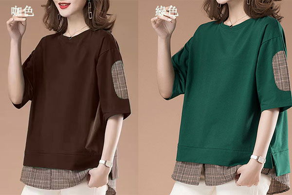 休閒寬鬆設計感假兩件T恤【買一送一】【綠色】+【咖色】各一件(到手兩件,每件均價549元)