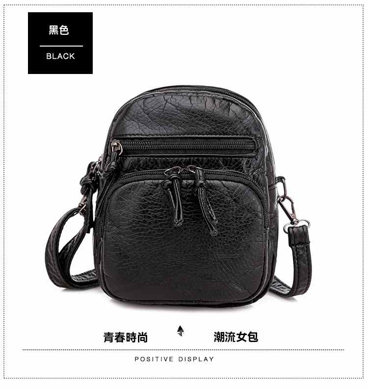 多層大容量復古軟皮時尚手機包【黑色】1組