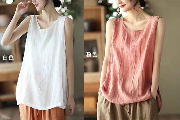 棉麻氣質減齡內搭外穿吊帶背心【買一送二】白色+粉色+青色各一件(到手3件!每件均價333元!)