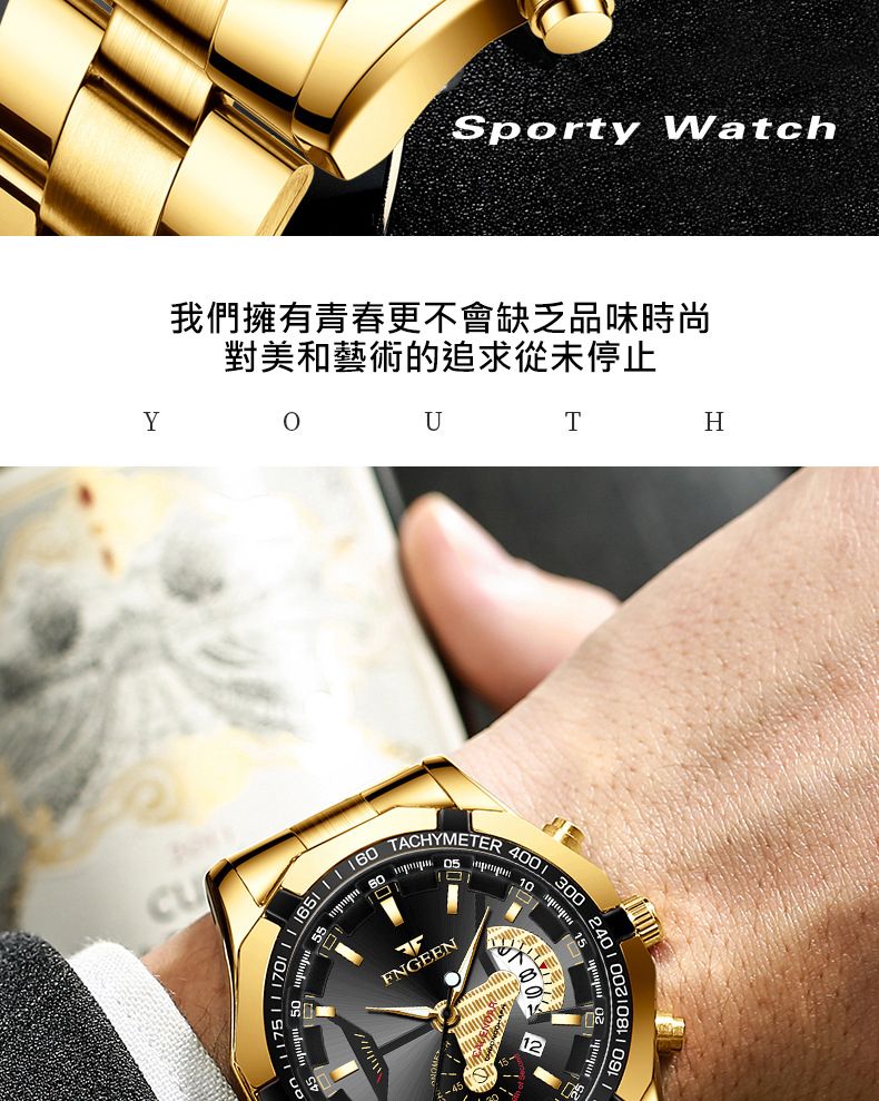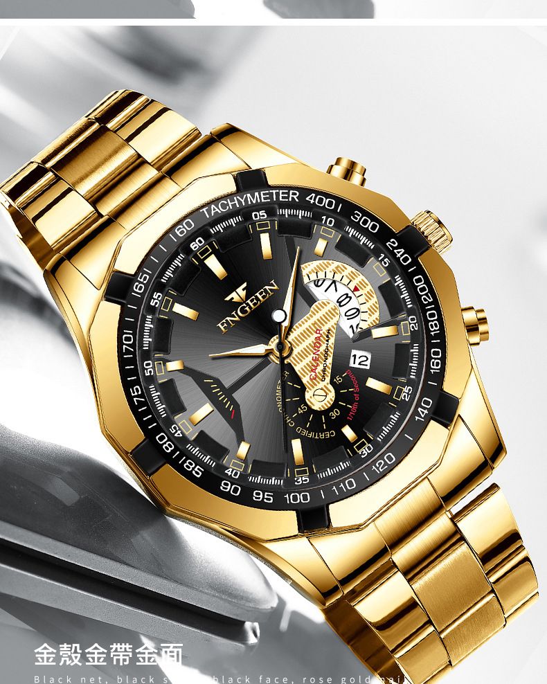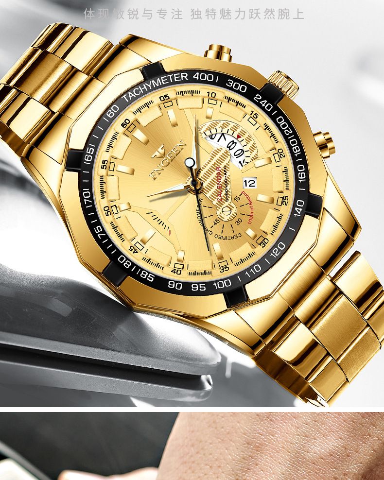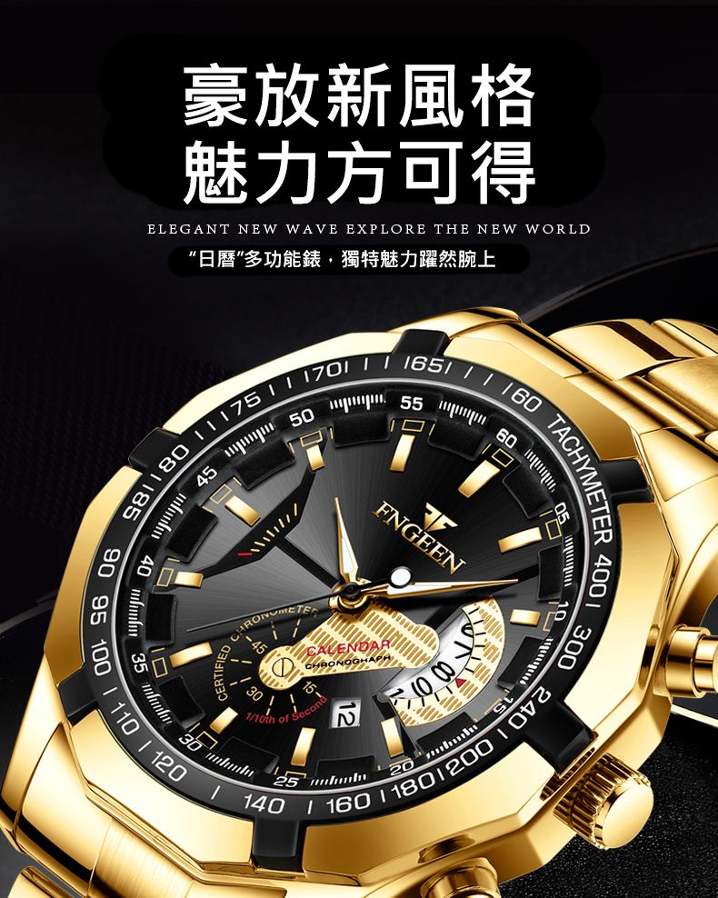 【美學新風尚】超大新日曆大錶盤男士手錶【全金金面】一塊