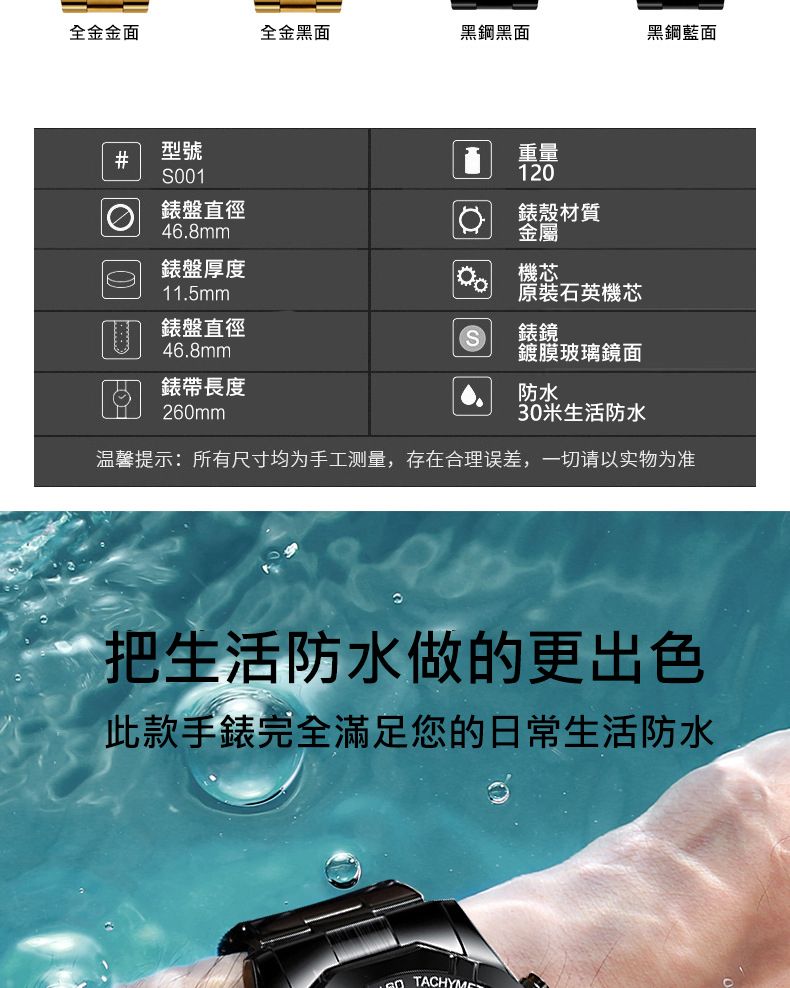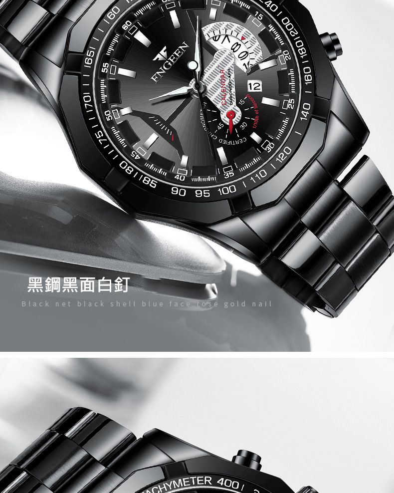 【美學新風尚】超大新日曆大錶盤男士手錶【全金黑面】一塊