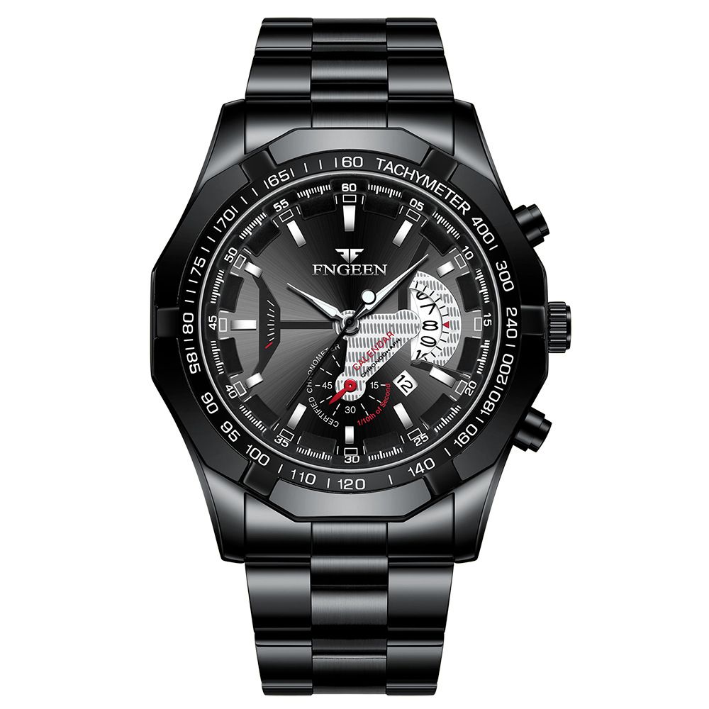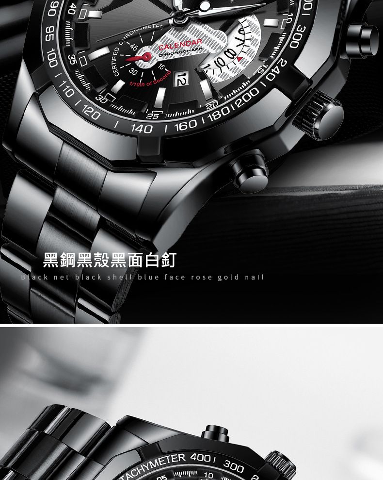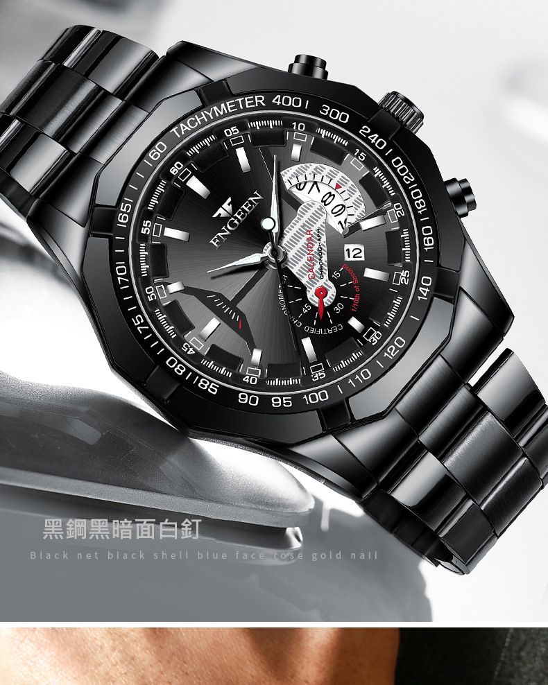 【美學新風尚】超大新日曆大錶盤男士手錶【黑鋼黑面】一塊