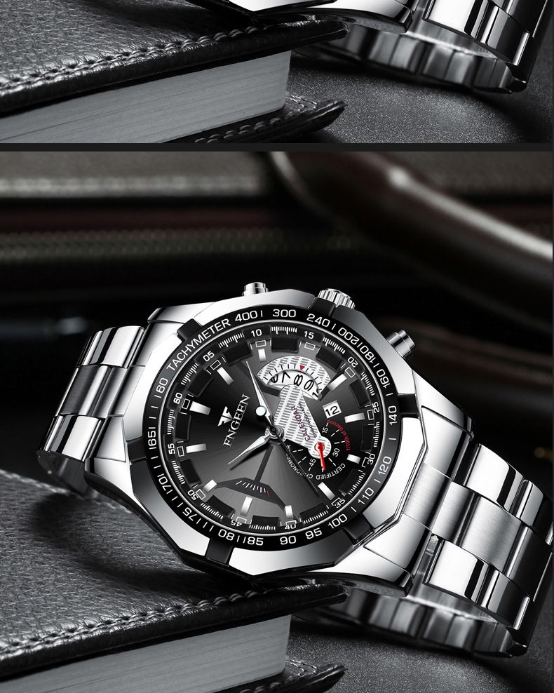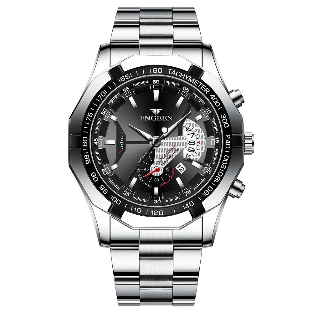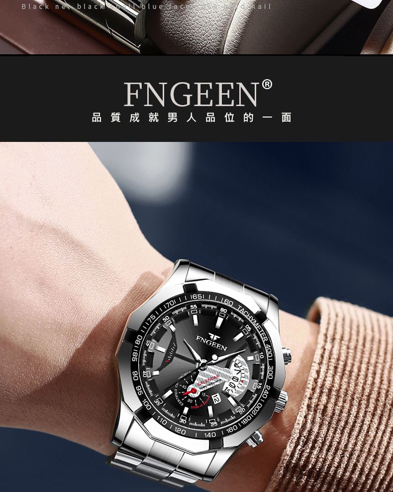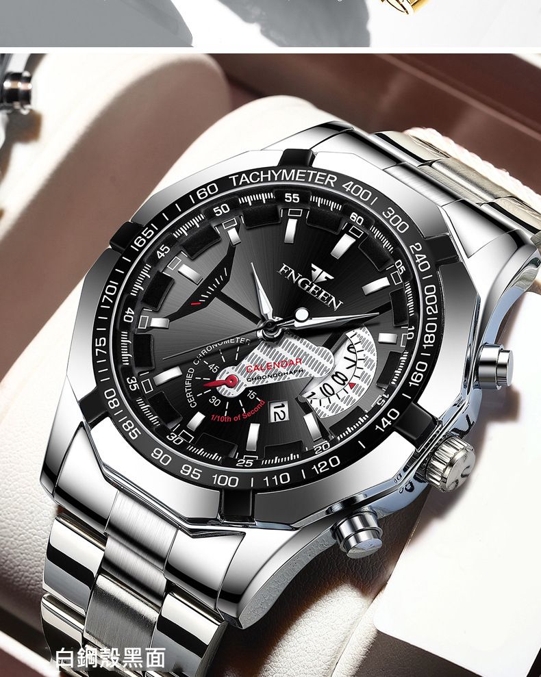 【美學新風尚】超大新日曆大錶盤男士手錶【白鋼黑面】一塊