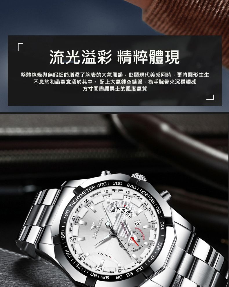 【美學新風尚】超大新日曆大錶盤男士手錶【白鋼白面】一塊
